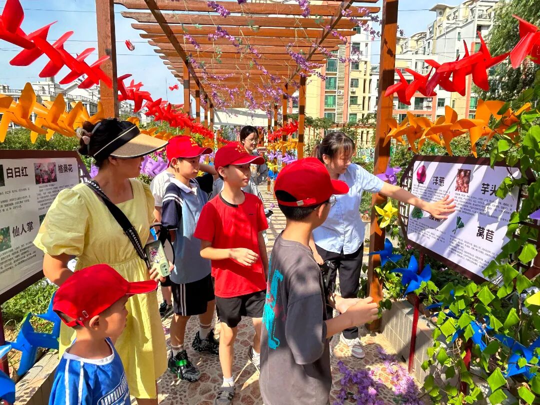 当地青少年在“屋顶花园”植物科普基地开展认知教育。(社区供图)