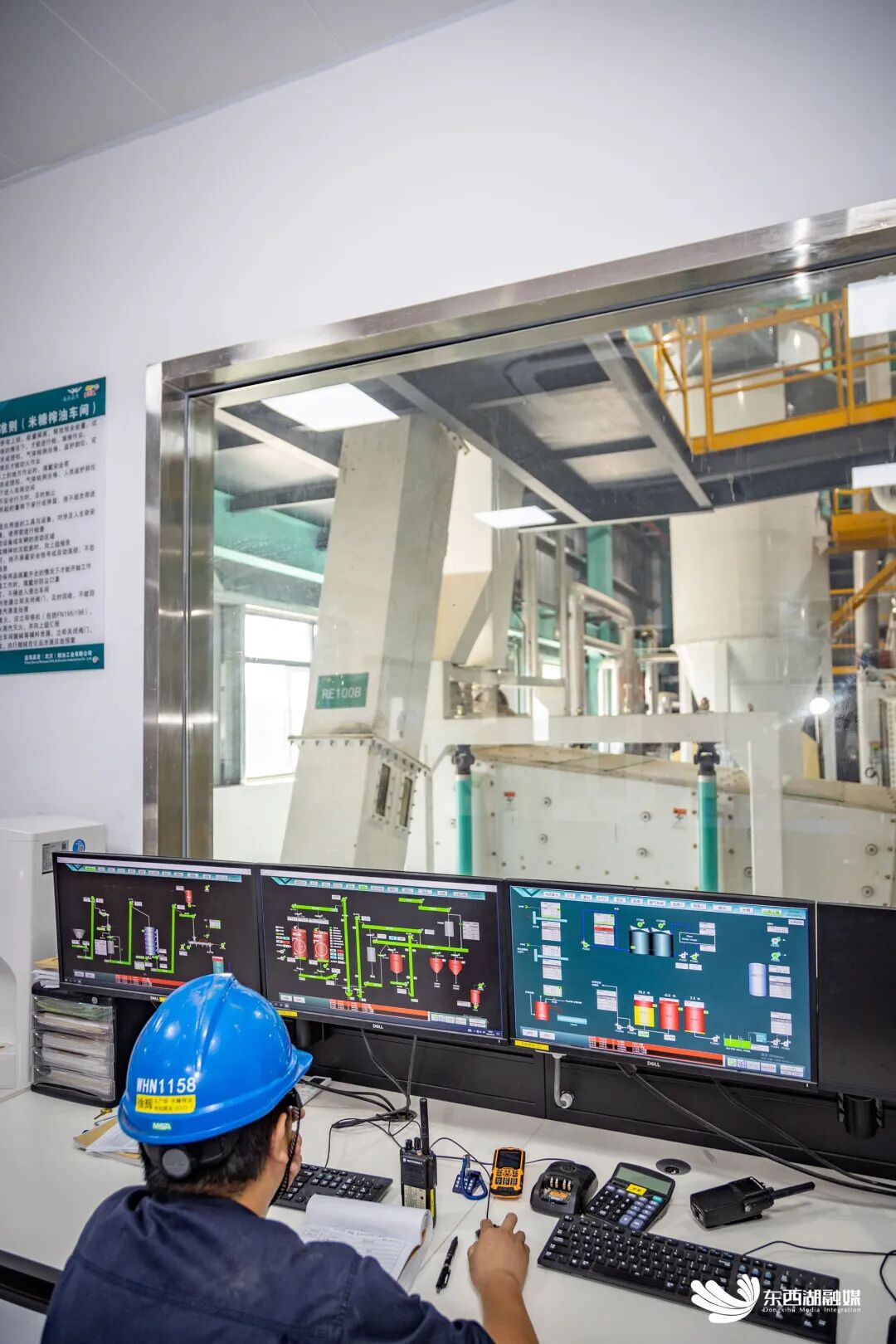 米糠榨油车间总控室。