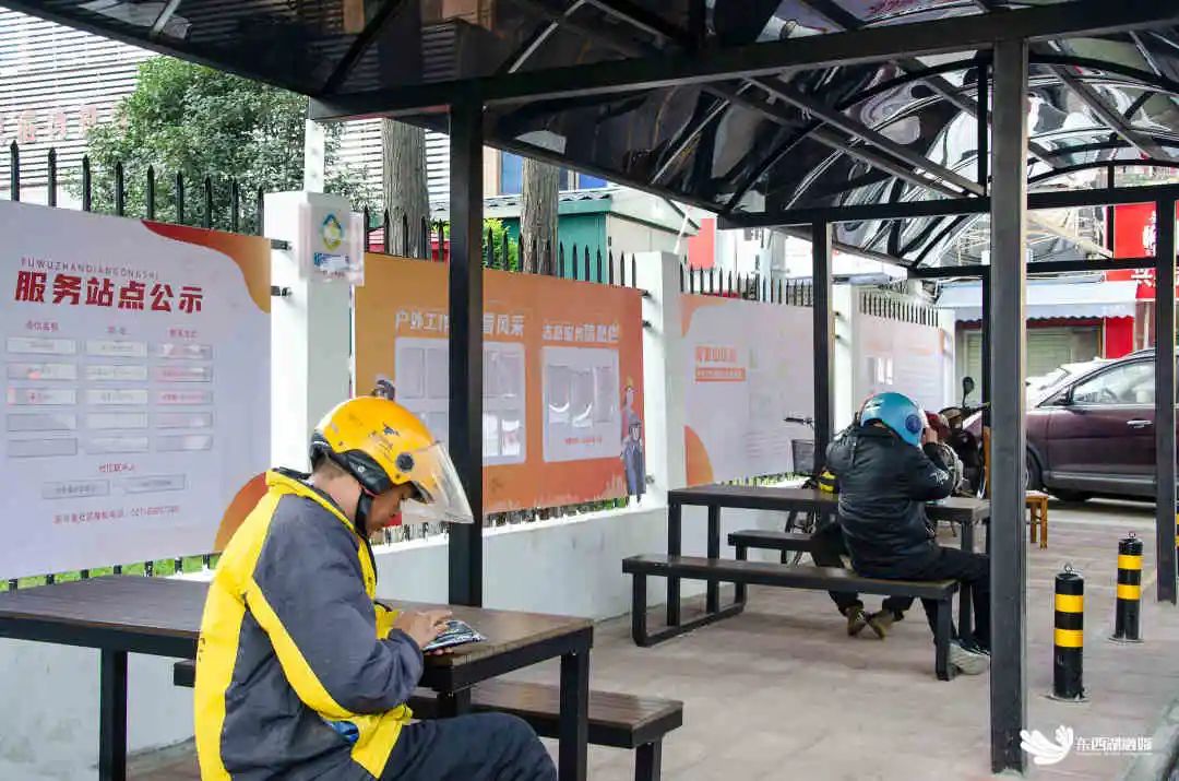 “现在,出门不便的群众需要代买物品,就可以联系网格员,我们再联系登记的外卖小哥帮忙免费配送。”李莎介绍,后续还会在户外驿站增加更多的桌椅,方便服务更多的户外工作者群体。