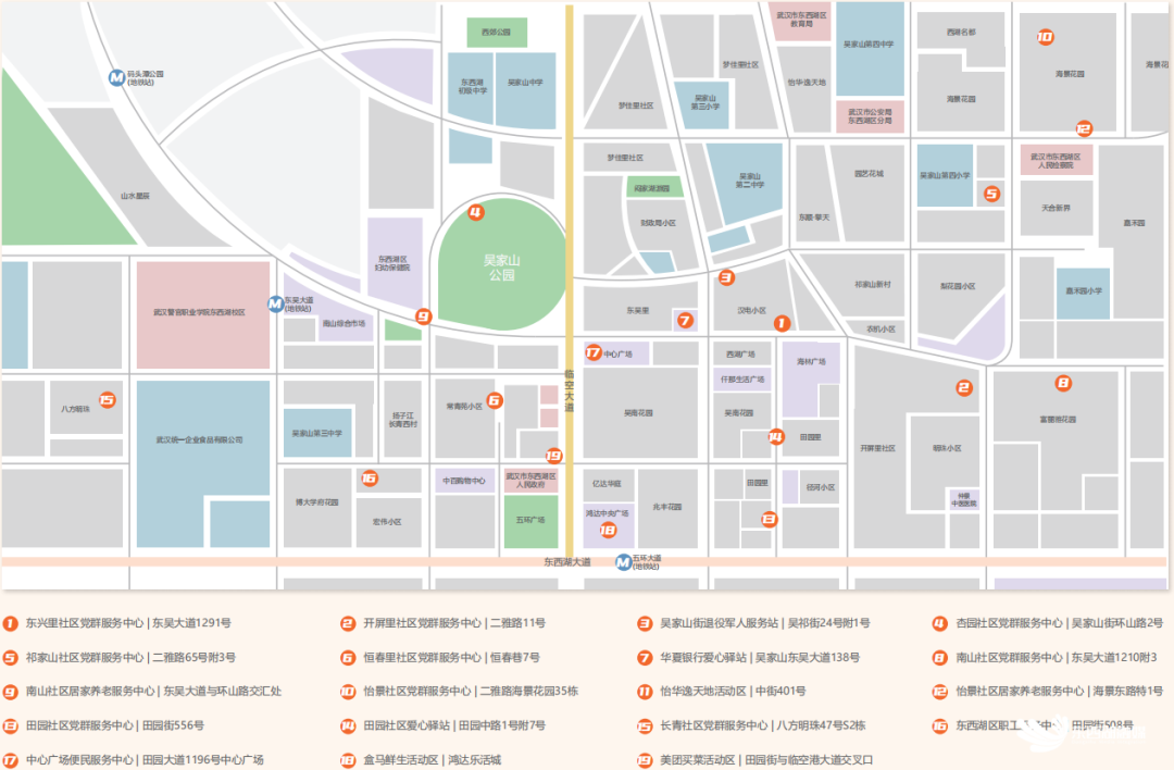 吴家山街户外工作者驿站点位分布图。