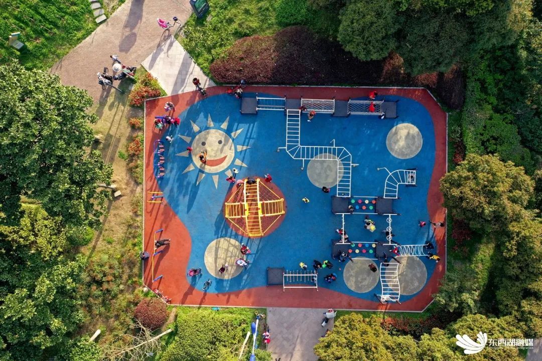 时至秋冬,树顶藏不住阳光。80后爸爸任辉明喜欢带5岁女儿沐浴着阳光在社区中央公园游园,“前期经社区征求我们意见,改造后的公园有了青春元素,增添了儿童游乐、健康绿道,更契合年轻人需求。”