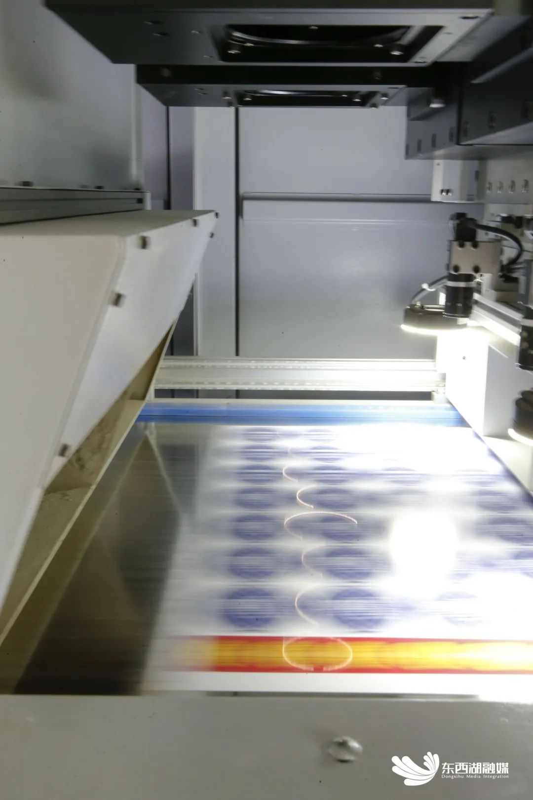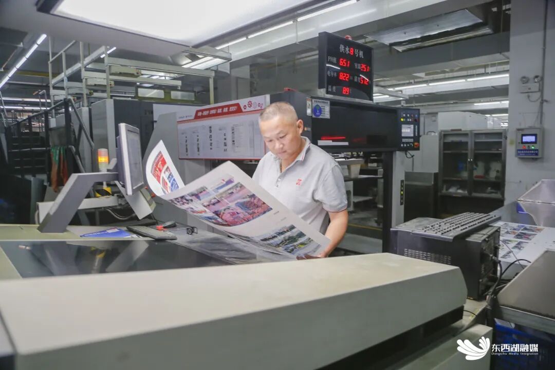 走进印刷车间内,浓郁的墨香扑面而来,9台57个印刷机组同时运转,一张张精美图文不断下线进入装订工序。
