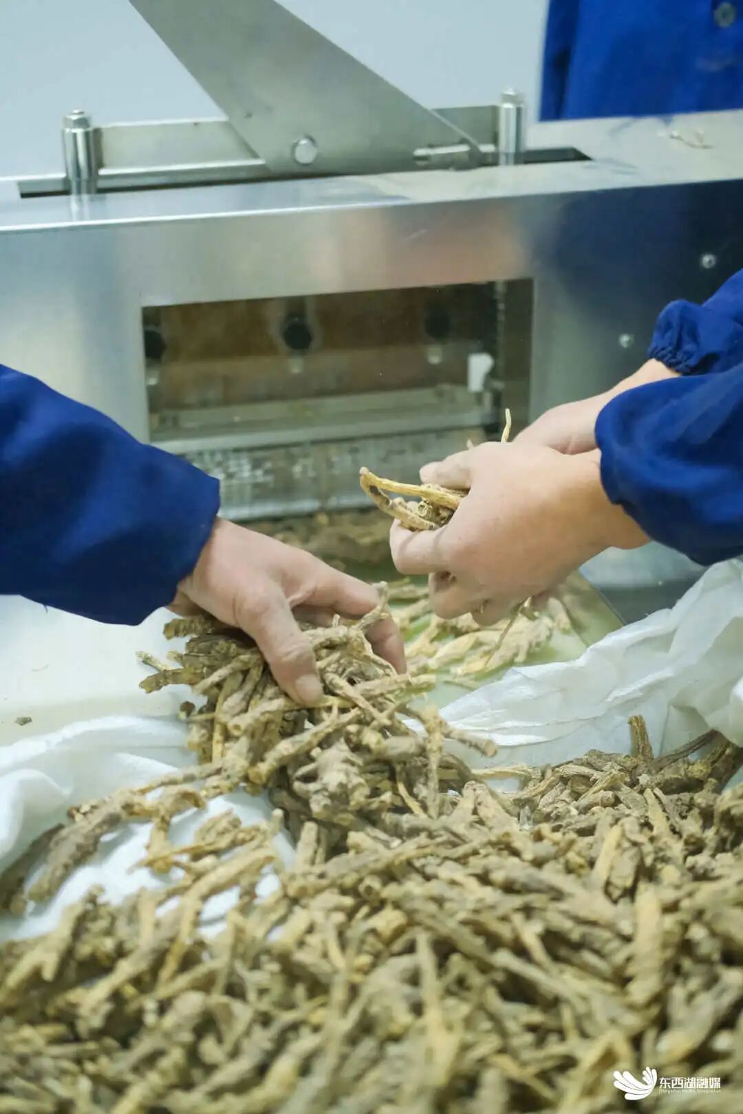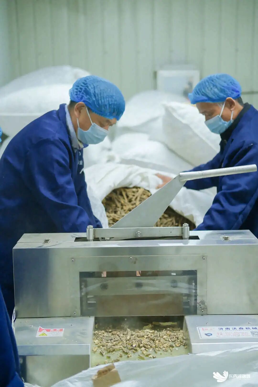 分拣完成后,药材会在前处理车间进行切割,伴随自动切割机的运作,陈皮、薄荷、桔梗等各种药材被处理干净,空气中的药香也更加浓郁。