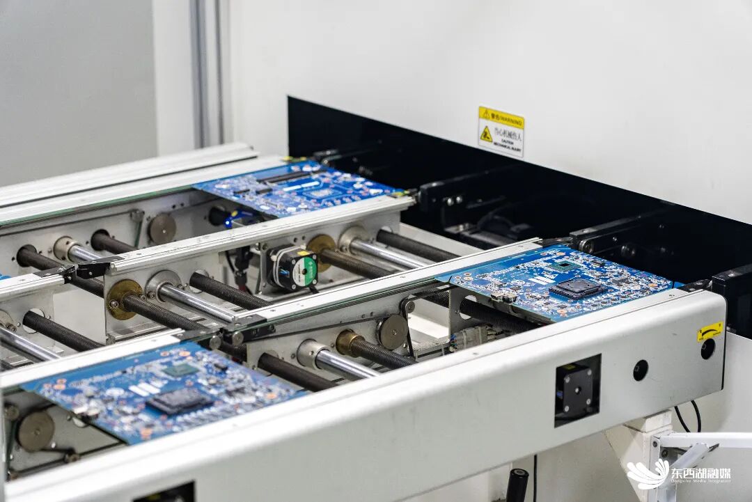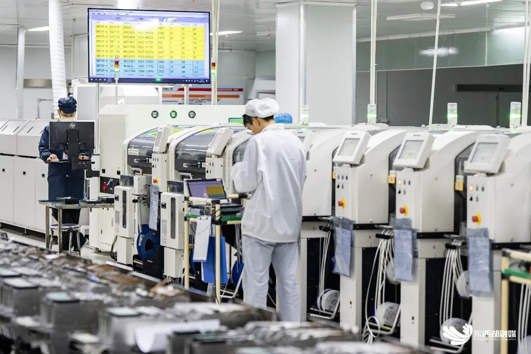 记者在生产车间看到,电脑主板上的精密元器件焊接流程,全部由自动化生产设备完成。SMT生产线上,成百上千个元器件被组装在主板上,经高温回流焊后进行成品自动化检测。