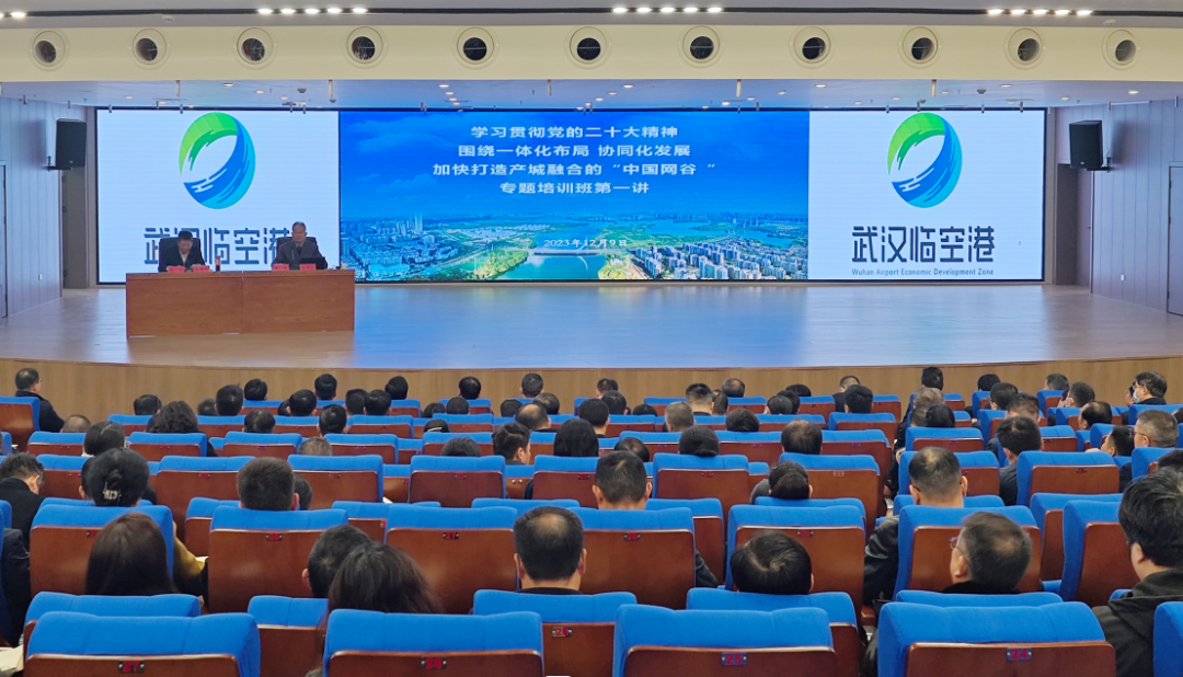 12月9日,东西湖区领导干部“学习贯彻党的二十大精神 围绕一体化布局 协同化发展 加快打造产城融合的‘中国网谷’”专题培训班第一课开讲。区委书记彭涛主持并讲话。