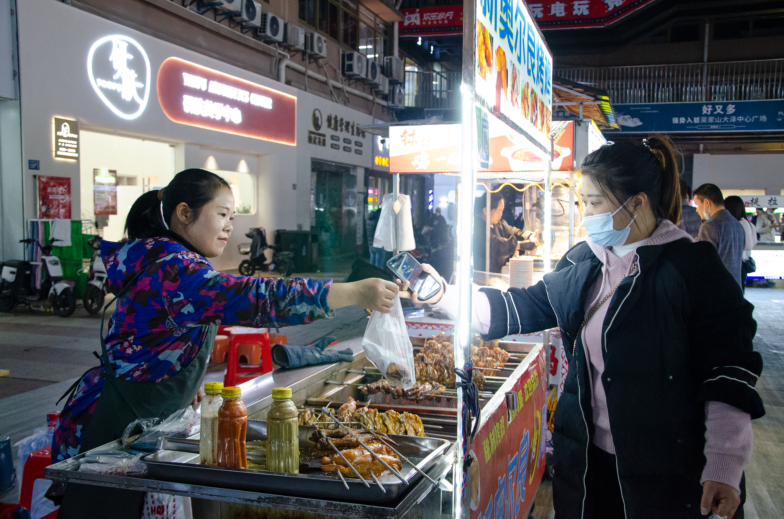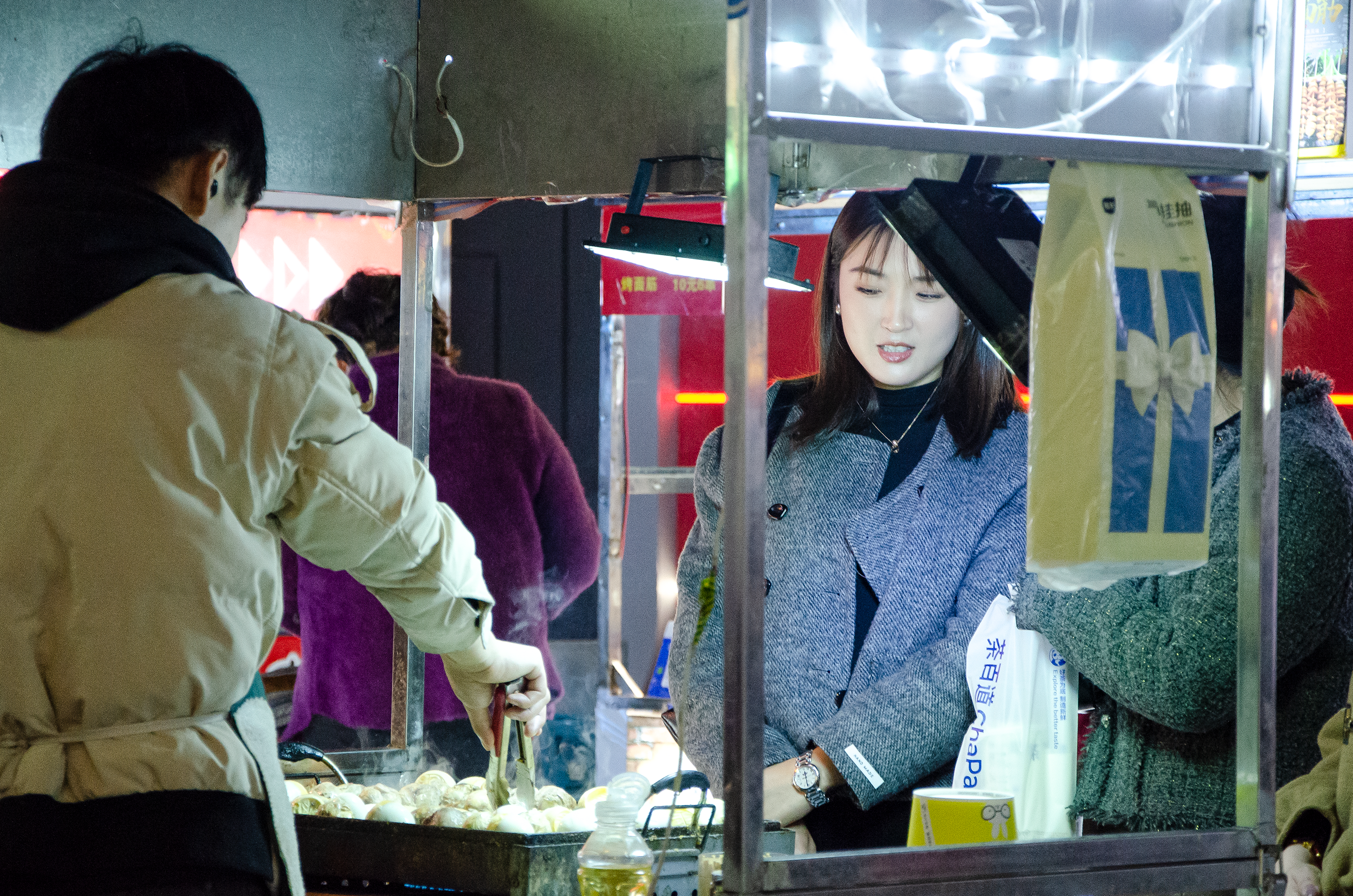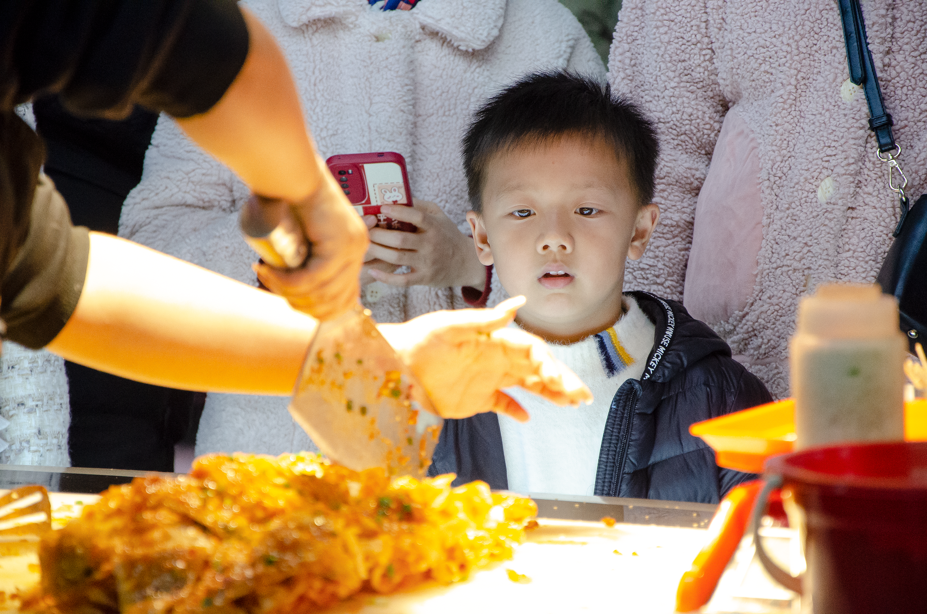 气温下降并没有影响美食街的人气,置身热热闹闹的夜市,仿佛给人满身温暖。约上三五好友,吃一口烤肉,喝一口奶茶,或边走边吃,或坐在小板凳上,正吃的时候讨论着嘴里的美食,心里思忖着接下来再吃哪一家,直到肚皮滚滚。或许,这才是寒冷冬日的正确打开方式。