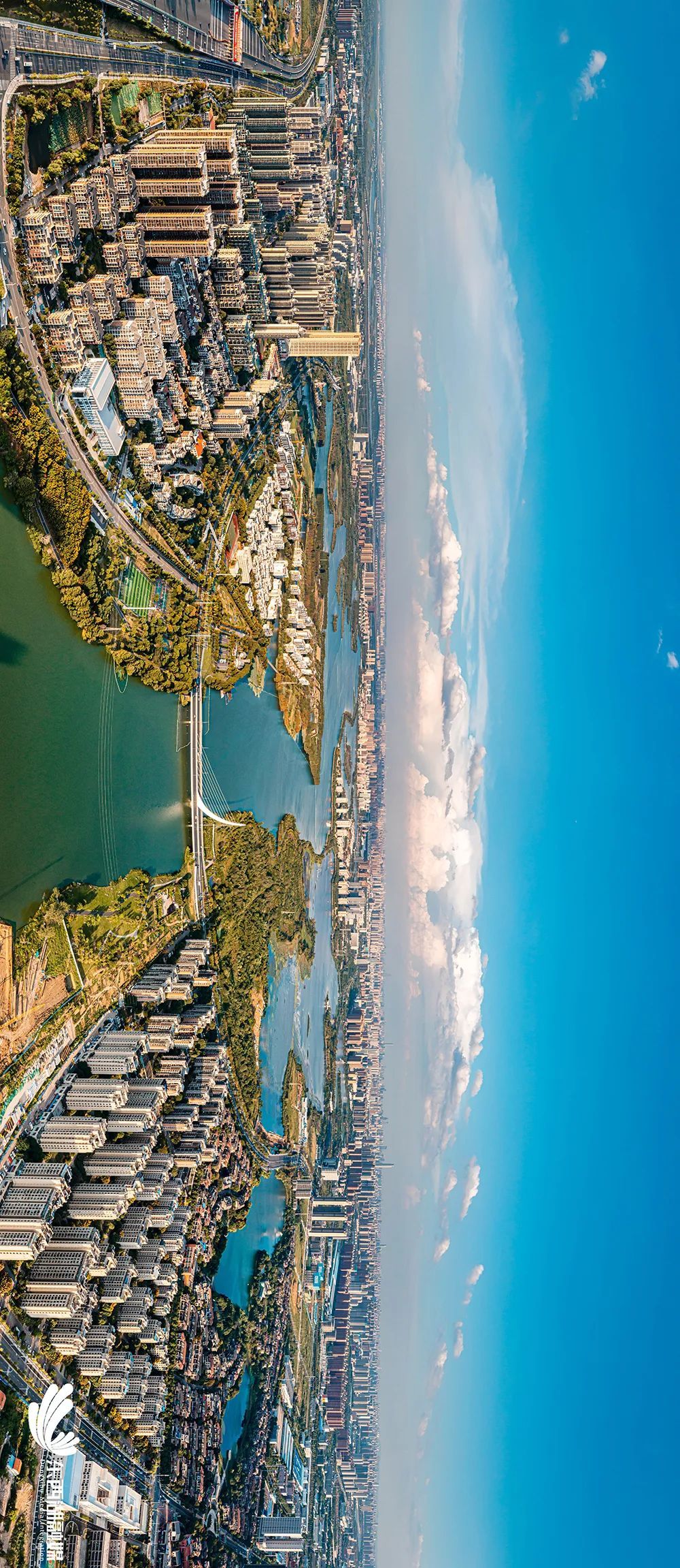 一渠樱花溪水穿城而过、两条地铁在此交会、六座桥梁飞跨径河、多条道路完工通车、百幢高楼拔地而起。以水为媒、临水建园、依水添景,人均公园绿地面积约8.35平方米。