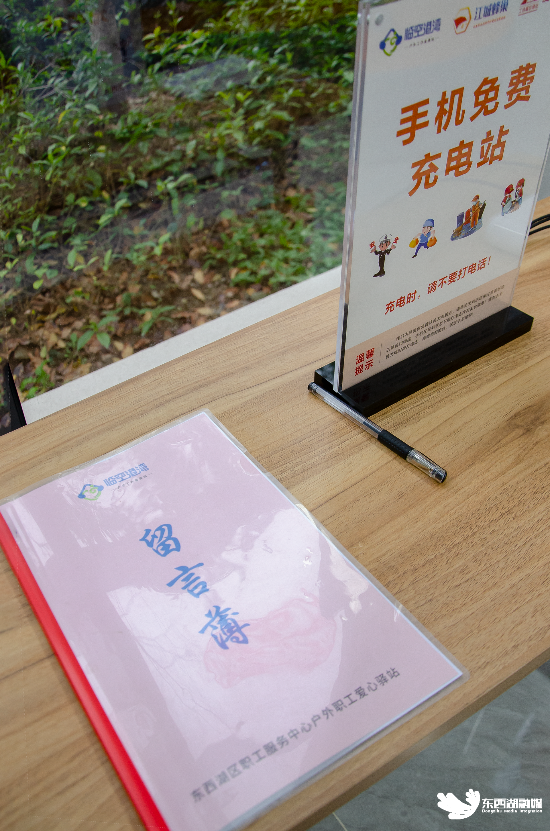 东西湖区职工服务中心户外职工爱心驿站创建于2016年,因原址位置狭小,去年4月搬迁至新建成的东西湖区工人文化宫临街一楼大厅。