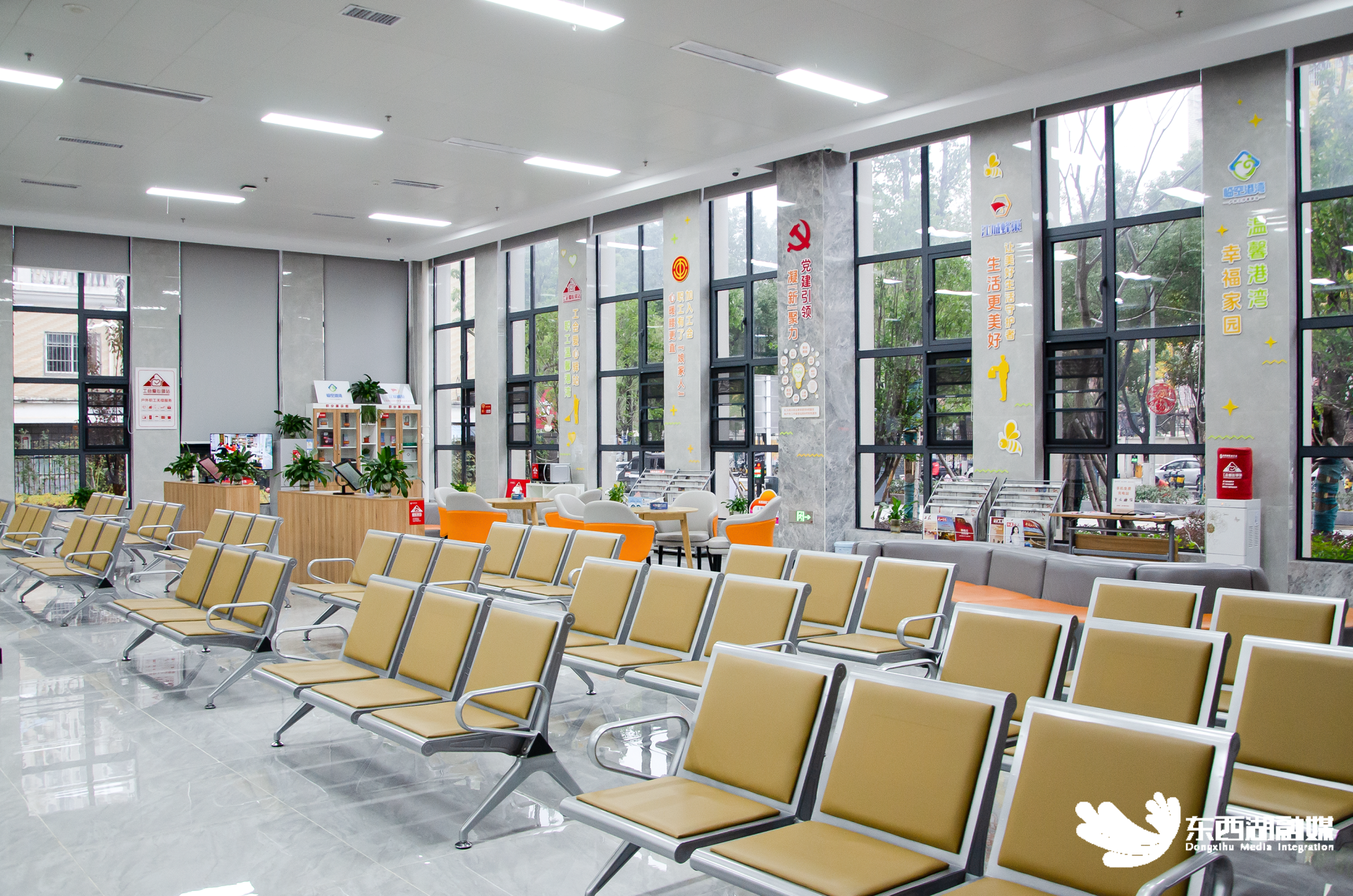 走进面积100平方米的驿站,沙发、座椅、冰箱、微波炉、书报架、应急药箱、爱心雨伞、中央空调、有线和无线充电器、吹风机等设施设备一应俱全。