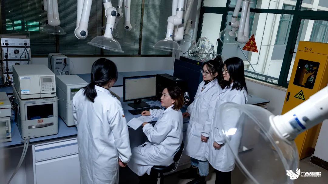 武汉轻工大学重点实验室主任王学东教授(中)带领学生开展研究。