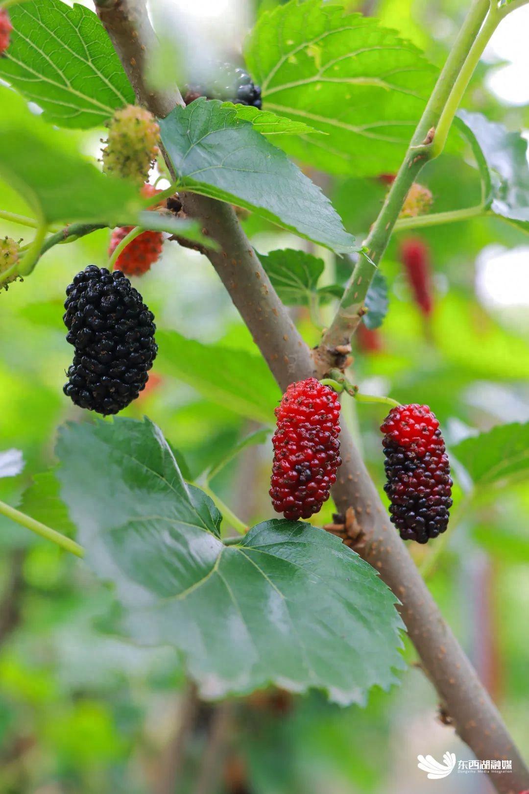 夏初正是桑葚成熟的季节, 在东山街吉祥采摘园,700棵桑葚树迎来了成熟,静待游客采摘。