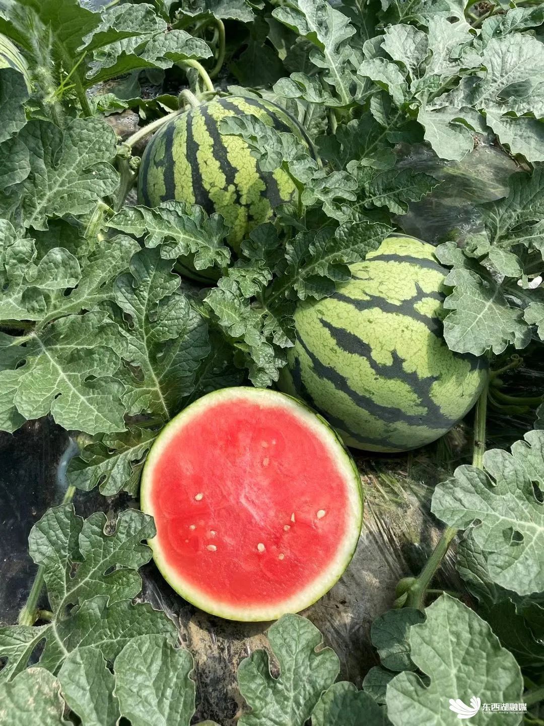红旗社区西瓜大棚,一个个大如足球的冰糖瓜藏在翠绿的藤蔓里,俏皮又可爱。种植户郭磊介绍,他的大棚西瓜面积足有50亩。