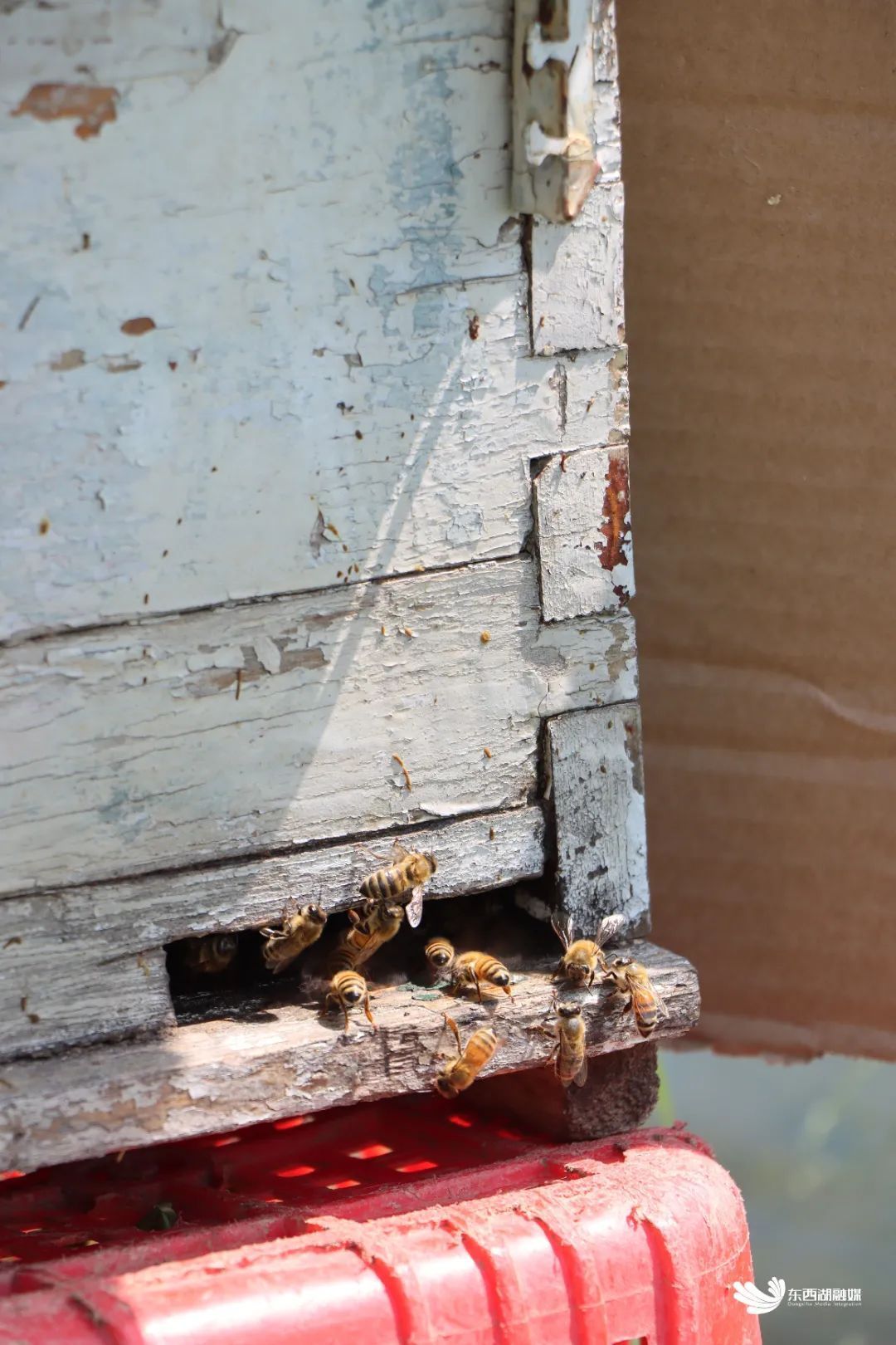 瓜棚外,一群蜜蜂在蜂箱里忙进忙出,这也是唐超的种植诀窍之一。通过“蜜蜂+人工”的方式对西瓜授粉,不但可以在最佳位置留瓜,提高坐瓜率,减少畸形瓜的产生,提升西瓜的品质,而且可以有效控制出瓜时间,让西瓜按照计划时间分批、分次上市。