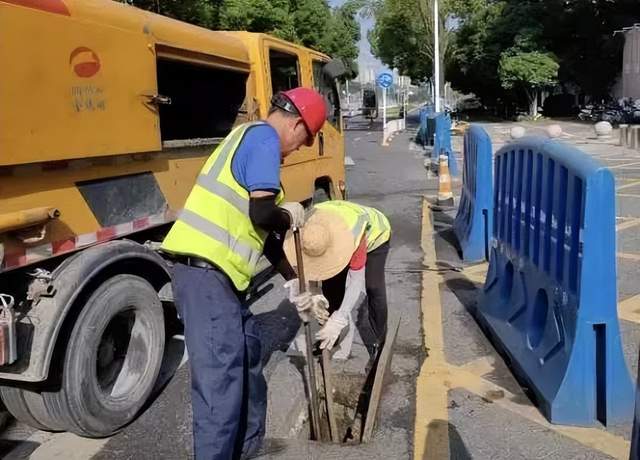 区水务和湖泊局组织工作人员对学校周边排水设施进行全面检查维护。(通讯员供图)