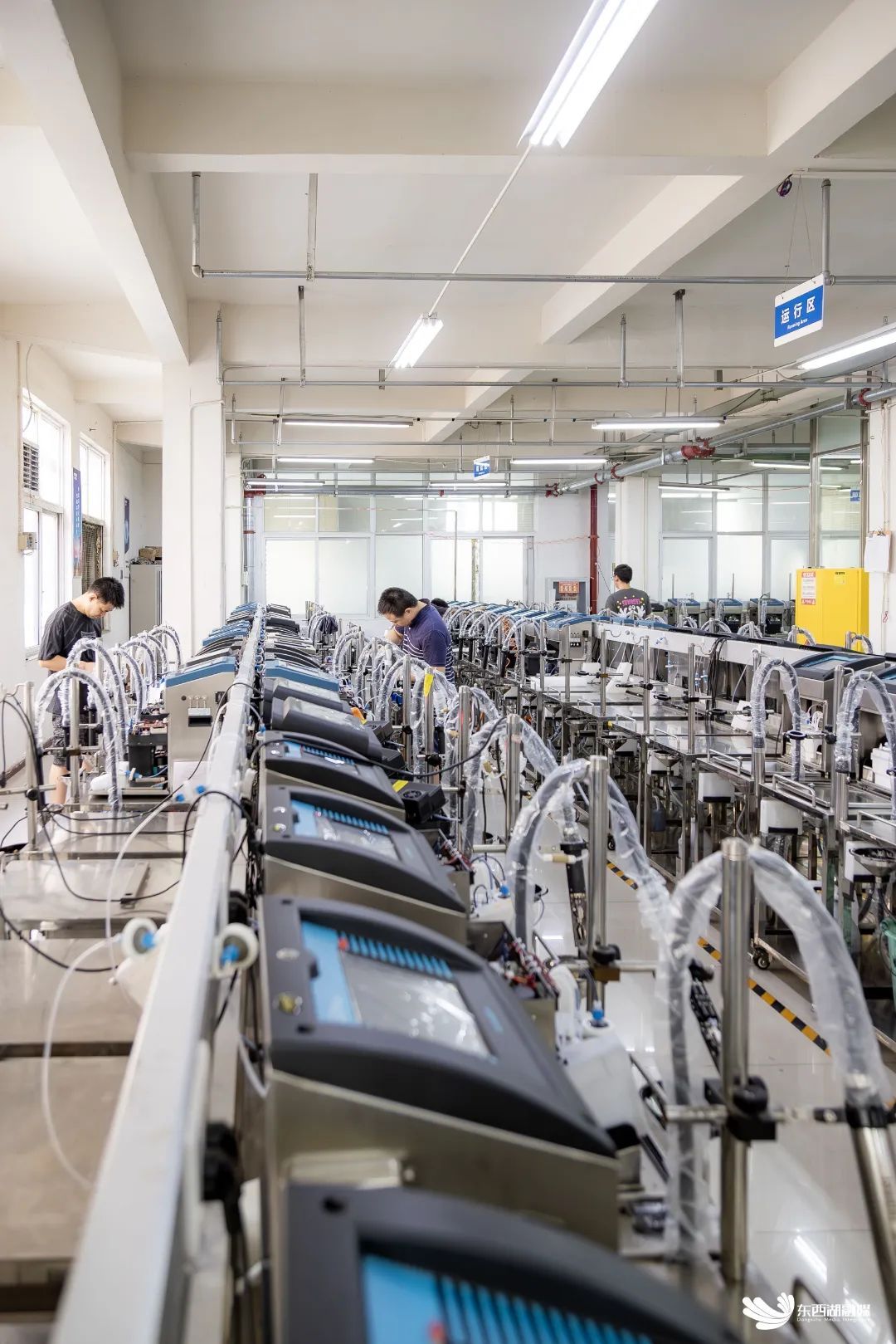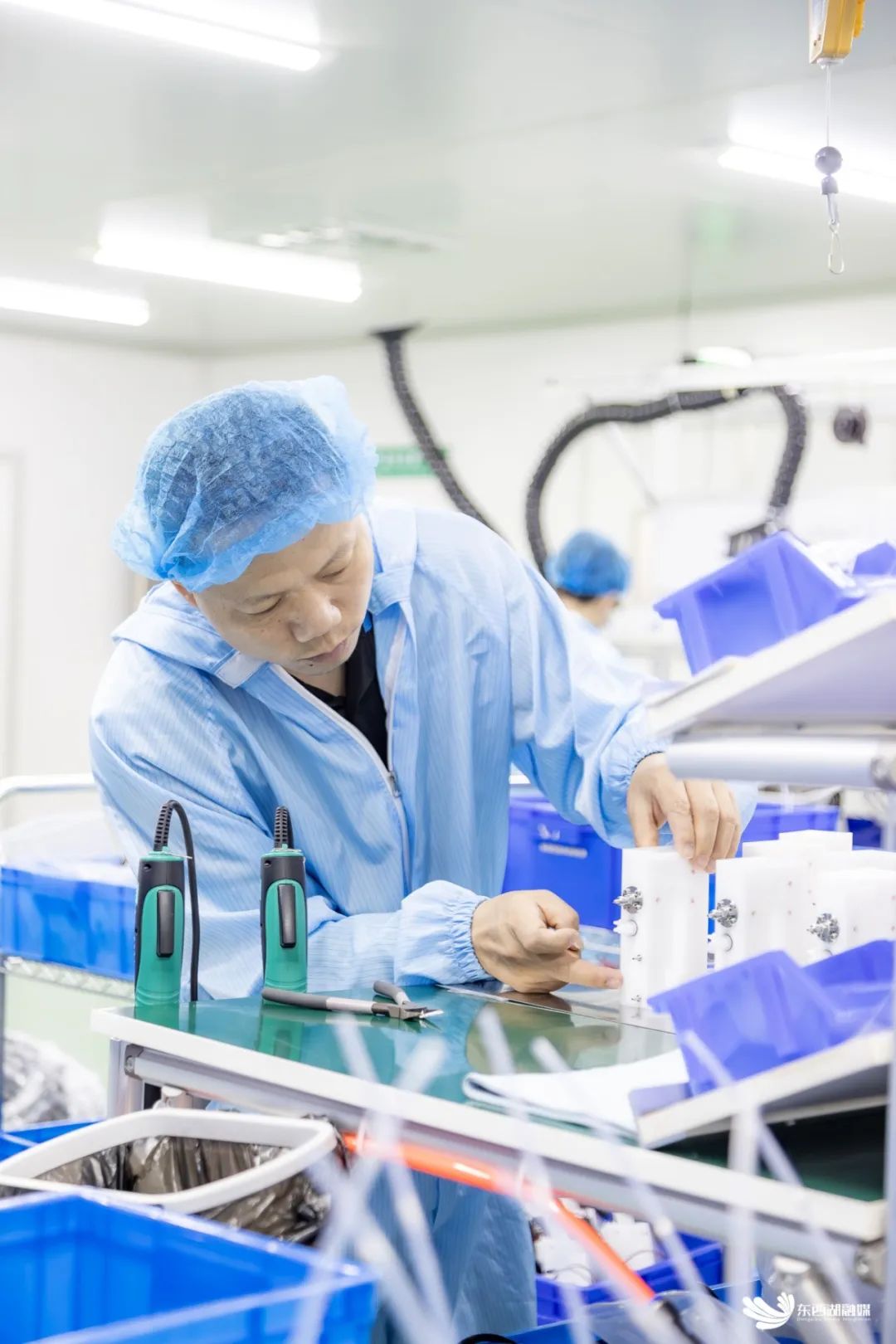 工作人员在无尘生产车间里忙碌。