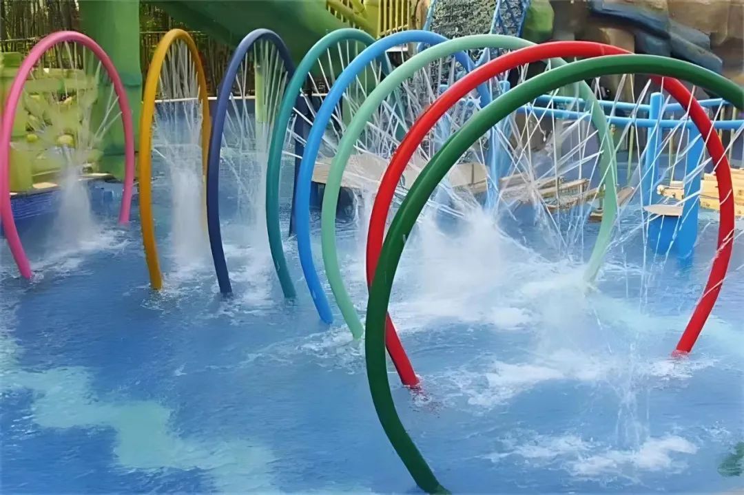 彩虹圈、冲天滑梯、旋转滑梯、网红冲凉翻转水桶、林荫戏水……