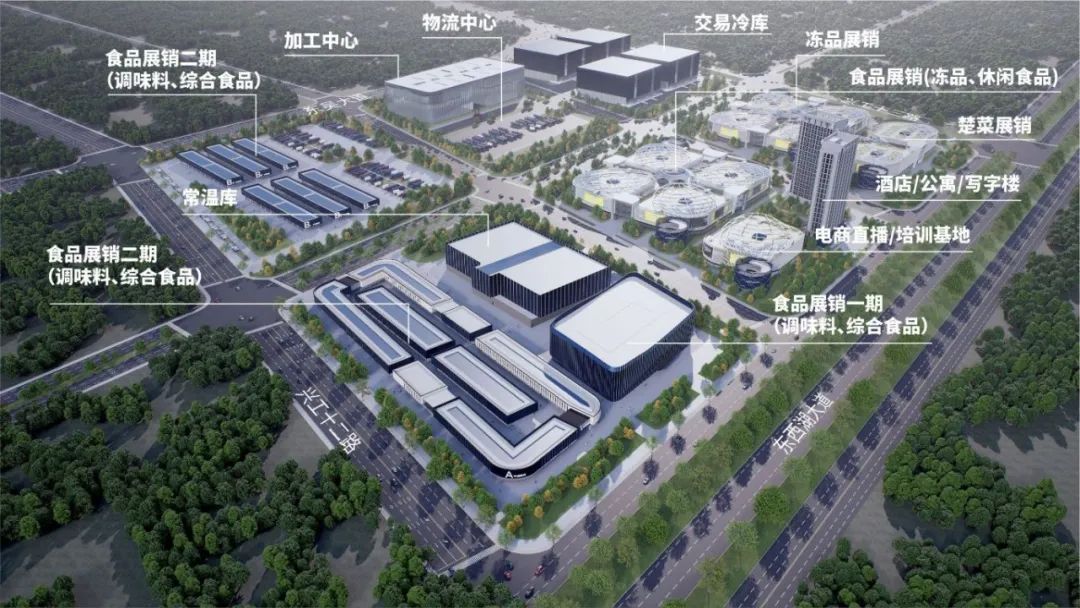 增益国际智慧物流港一期B、C地块规划为食品展销区、冻品展销区、电商配套区、楚菜展销区,由2大交易中心组团、8个连体式交易MALL组成,涵盖冻品、调理品、休闲食品展示与交易、商务洽谈、展销活动、电商直播与培训等功能,为食品贸易商提供国际化、现代化、一体化的交易场景。