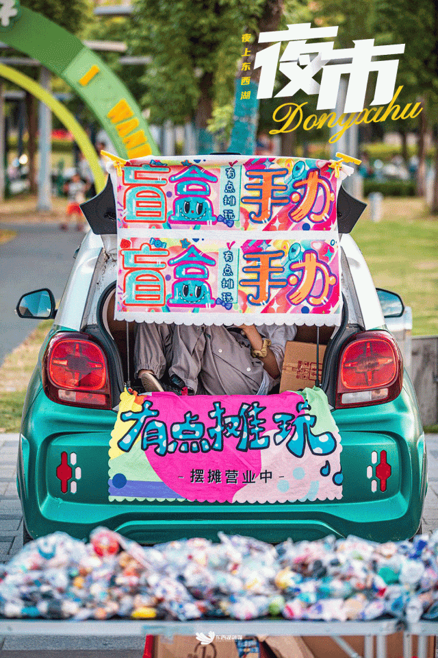 “有点摊玩”“贩卖快乐”“集市行乐”……双休黄昏,金银湖万达广场入口十余辆汽车围出一条人行通道,后备箱上悬挂的快乐口号,让热风吹拂的仲夏之夜,多了十二分的鲜活与时尚,由本地车友组织的后备箱市集再度点亮东西湖商圈的璀璨之夜 。