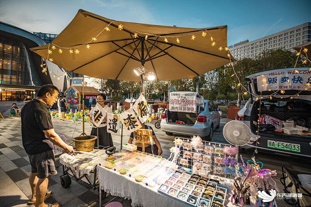 烧烤小吃、创意冰饮、非遗手工……市集业态不断丰富,市集地点也从金银湖万达向外扩散,最热火时,参与车辆达到40台。