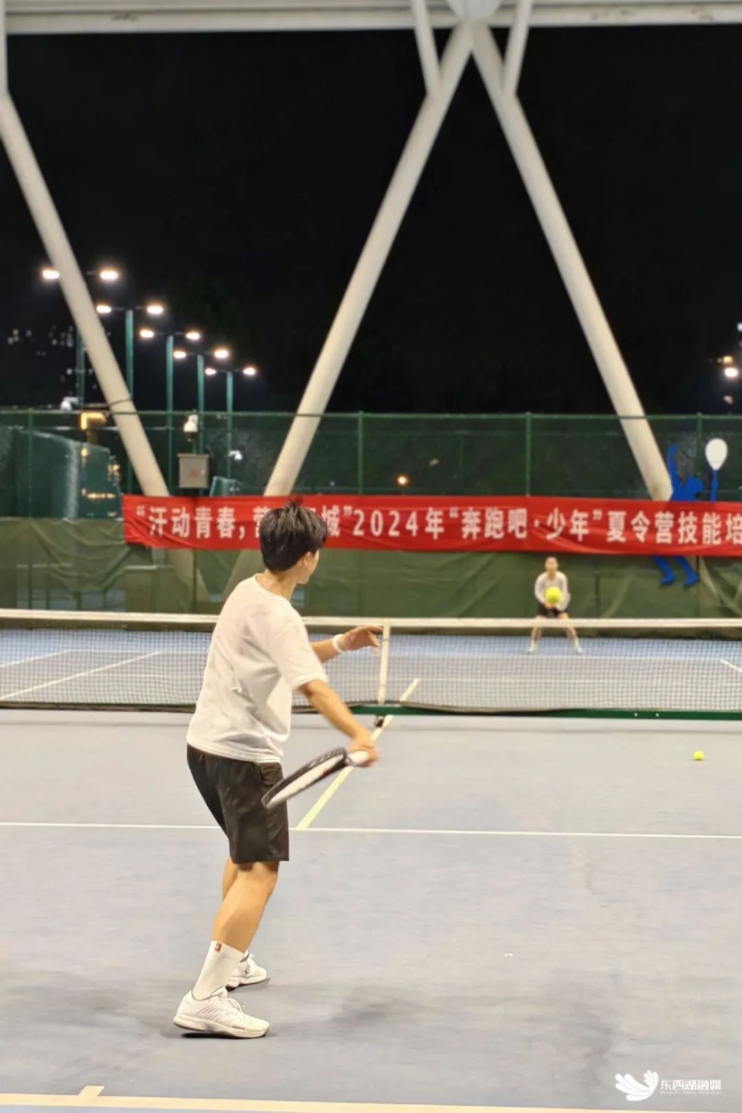 夜幕降临,华灯初上,在梧桐雨体育中心网球场和武汉五环体育中心网球场,网球爱好者们的热情,燃动整个球场。