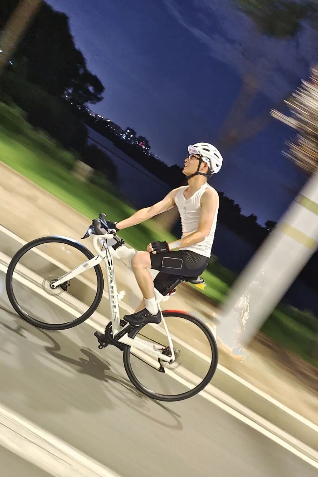 “骑行的魅力对于我来说,可以一边运动一边看不同的风景。心中的‘诗和远方’都可以在这项运动里面找到。”家住恋湖家园的李家安今年25岁,只要天气条件允许,每周都会和朋友们来一场夜间骑行,“越骑越上瘾,你看,装备也越来越专业。 夜骑一定要注意安全,不仅要穿戴好头盔、护膝等护具,单车前后还要配备警示灯,在单车两侧要做好反光措施,贴上反光条、反光贴纸等。”