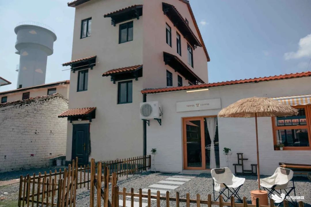 △店铺自创品牌“Tower coffee(他我咖啡)”以村里蓝色水塔为灵感取名设计。