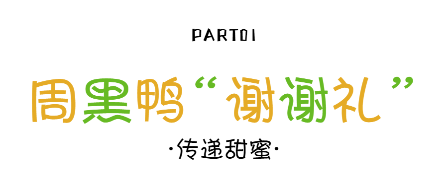 周黑鸭萌芽于1995年,味道的最初灵感来自一颗糖,是创始人记忆中甜蜜、幸福和快乐的味道,周黑鸭“谢谢礼”更是借助谐音来表达对家人、对朋友的回馈与祝愿,将这份甜蜜传递下去。