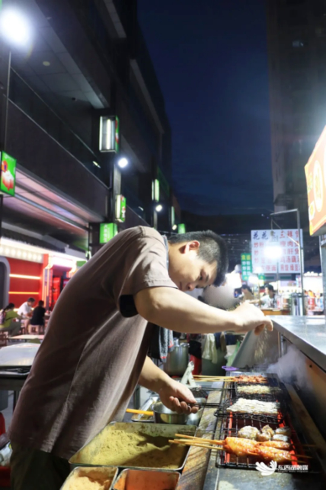 夜幕渐深,月亮升起,一波又一波的客人来到夜市,温度刚刚好,气氛刚刚好,味道也刚刚好。