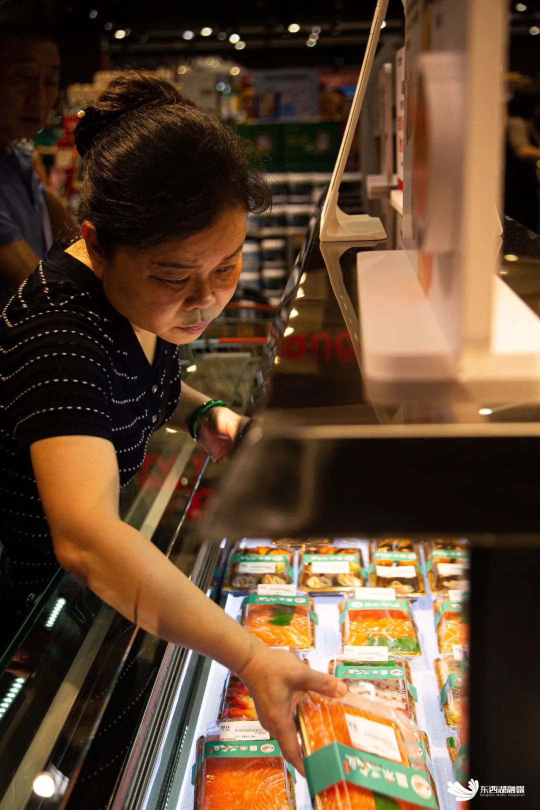 吴家山店新增三文鱼、有机蔬菜等潮流性商品。
