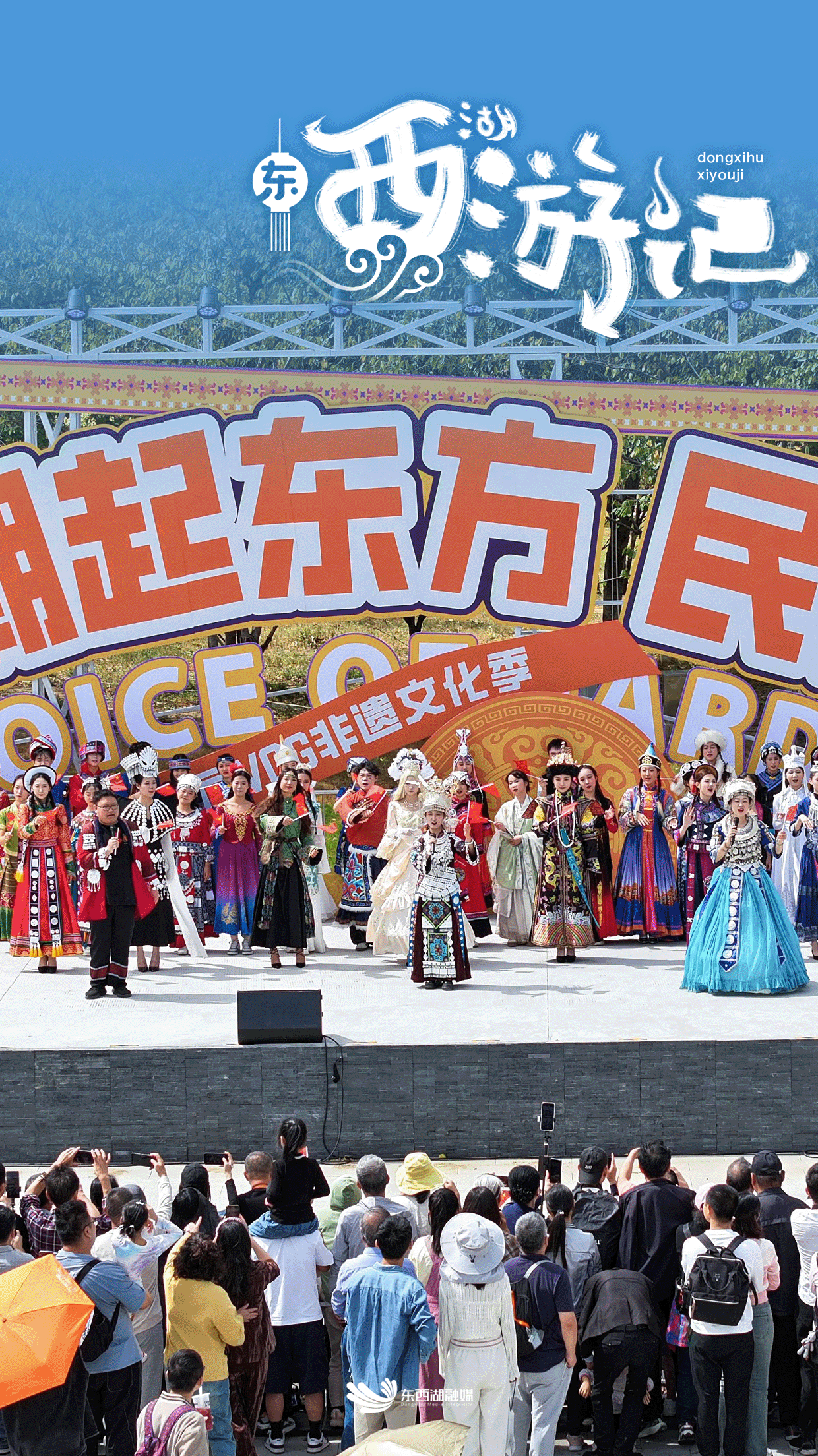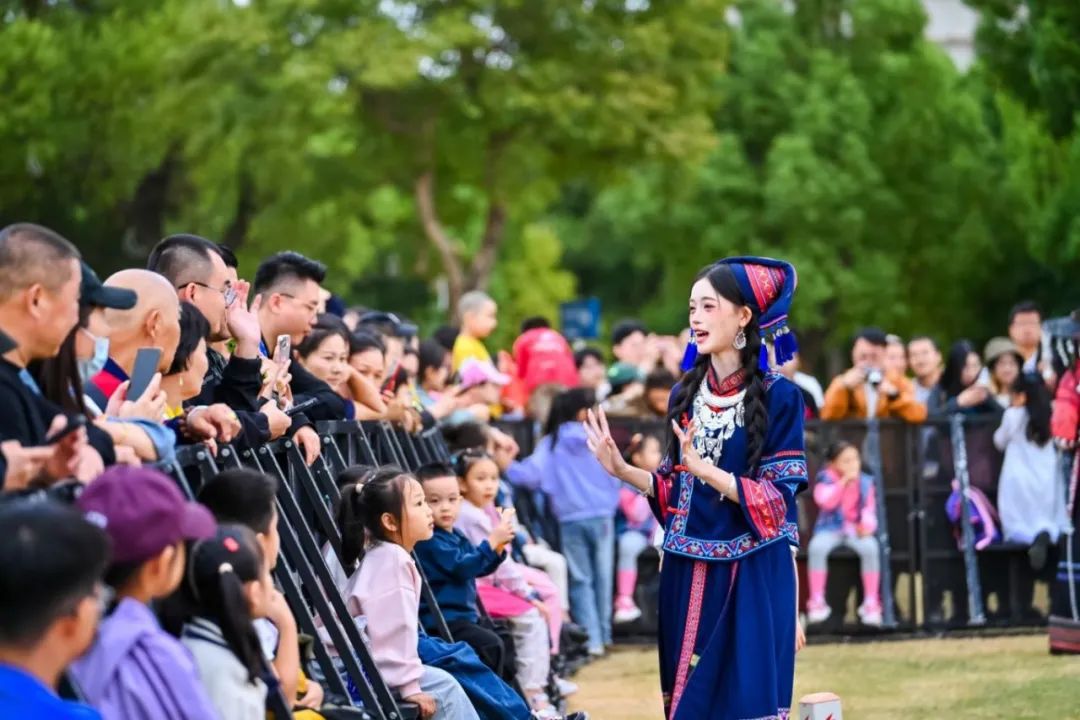 ????在南京园到杭州园沿线,是“治愈系非遗”民俗体验区,游客可以亲自体验各种非物质文化遗产项目,如对歌、簪花、编织、竹竿舞等,还有专业的手工艺人现场指导,让大家充分了解非遗文化的历史和传承。