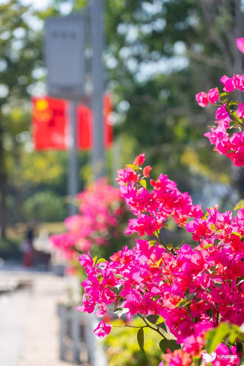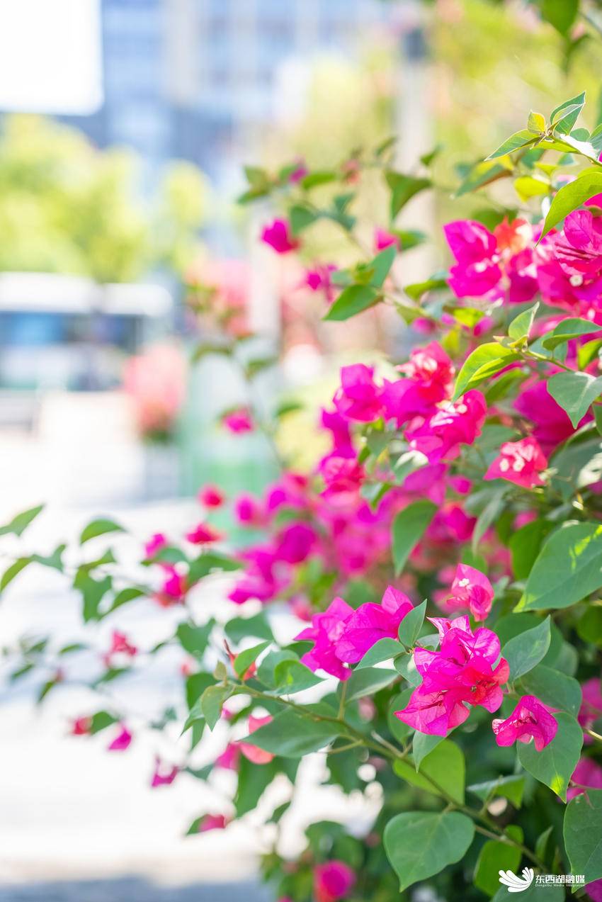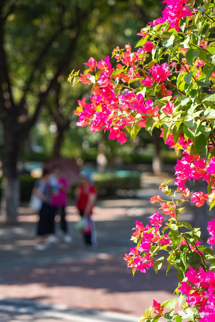 五环广场的三角梅,不甘示弱地展示着自己的色彩,它们在阳光下闪闪发光,为忙碌的城市生活增添了一抹亮色。