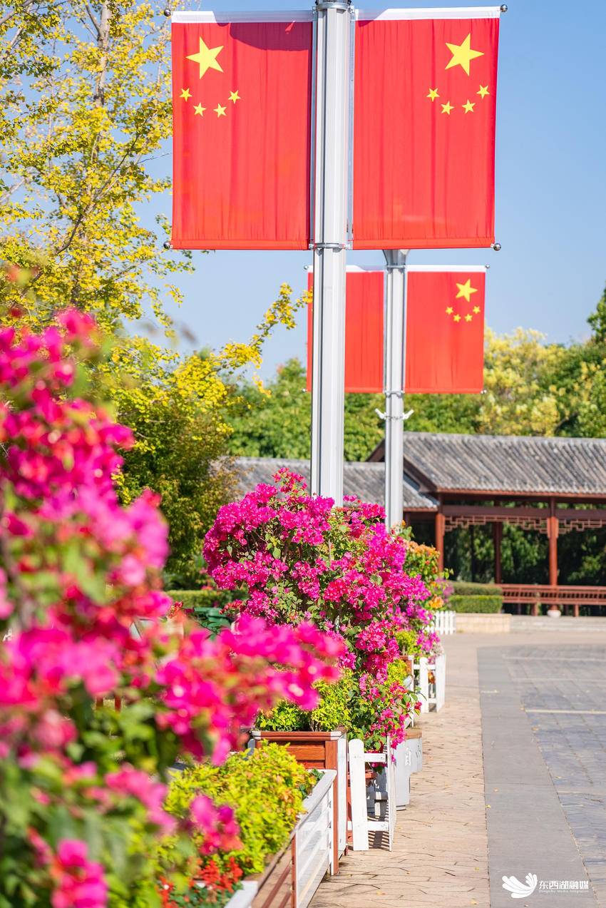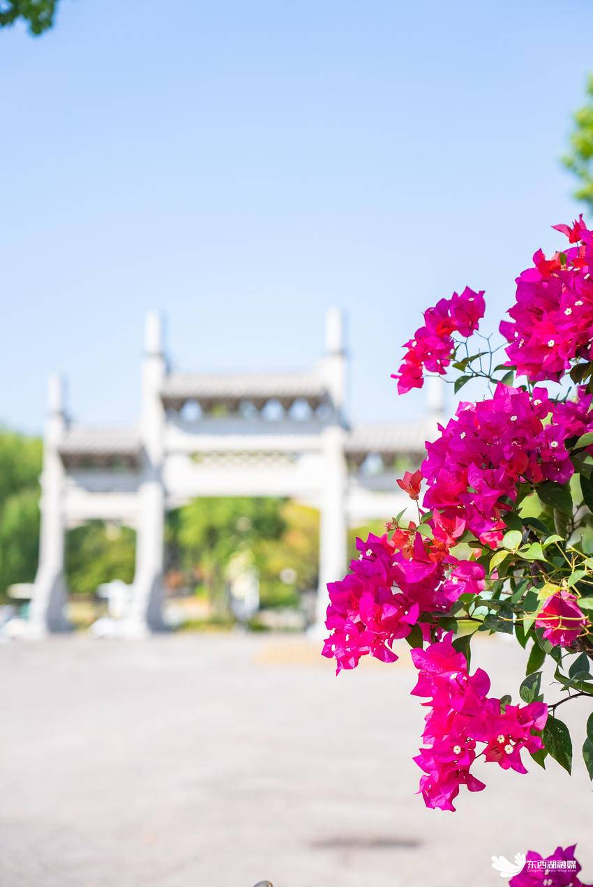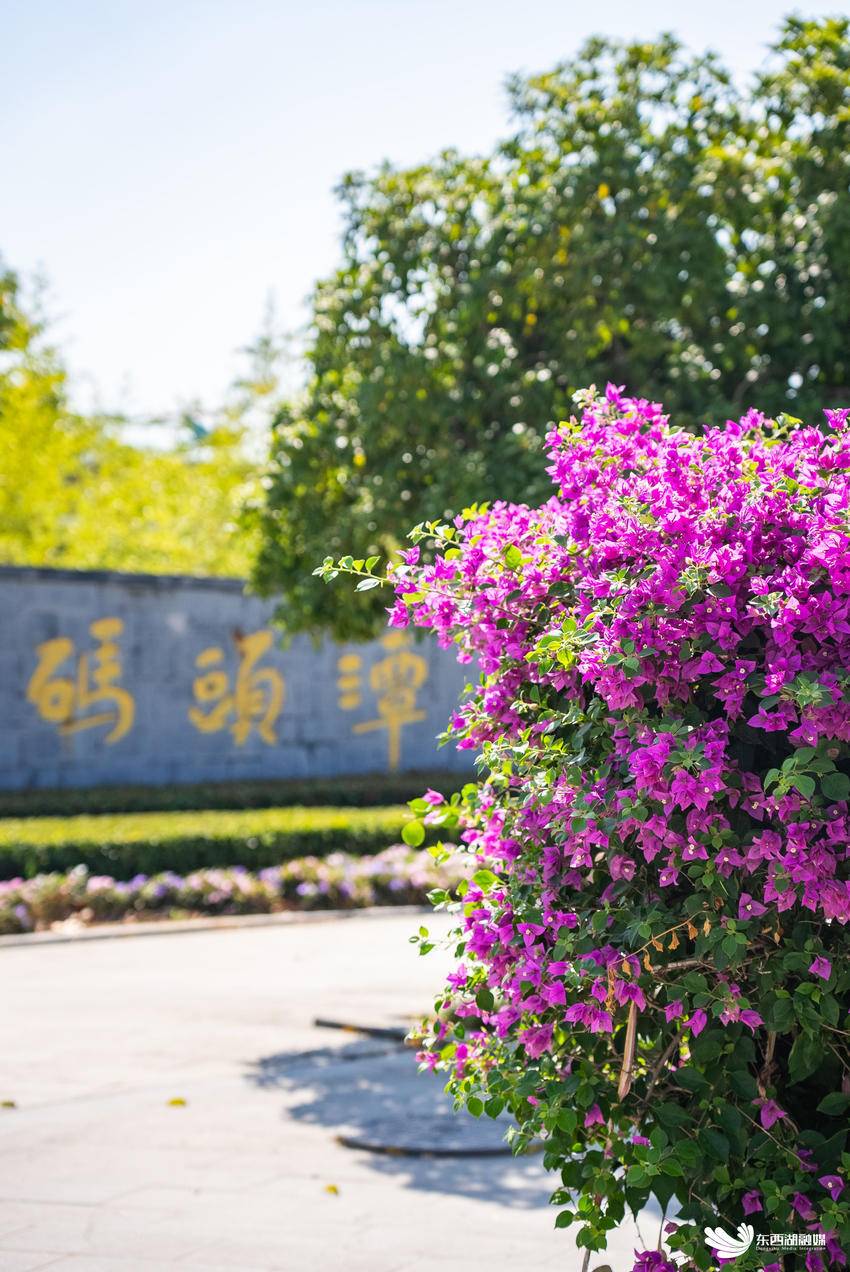 穿梭于码头潭文化遗址公园,古风观景台旁的三角梅,仿佛穿上了节日的盛装,与古建筑交相辉映,让人一秒穿越回那个诗词歌赋的年代。