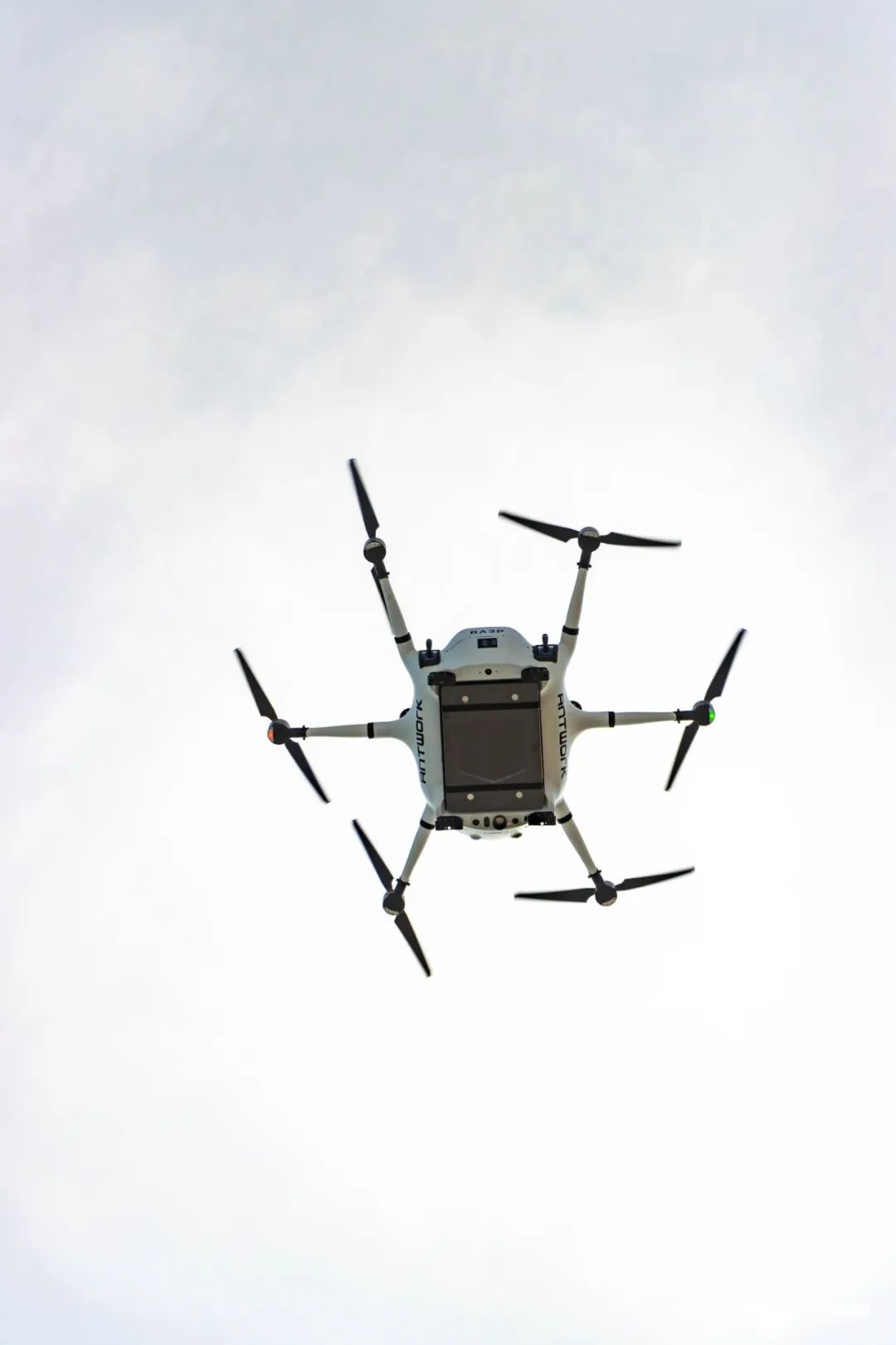 9月10日上午,武汉新港空港综合保税区东西湖园区,一架搭载进口商品的无人机腾空而起,经过20分钟飞行顺利抵达13公里外的东西湖万达广场。