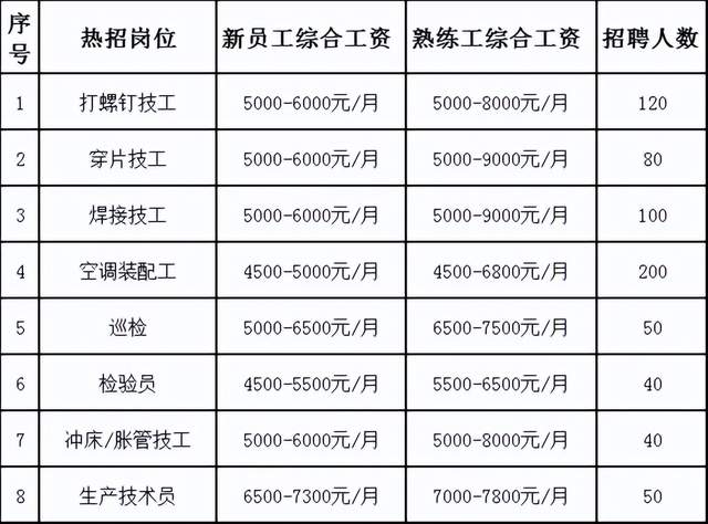 据了解,该公司本次招聘技工680人,月薪在4500元至9500元之间,有技术员、检验员、焊接技工等岗位,入职即缴纳“五险一金”。此外,公司还有创意改善奖、学历补贴、十级技能补贴、经营激励、年终激励、高温补贴、免费体检、免费停车位等福利。