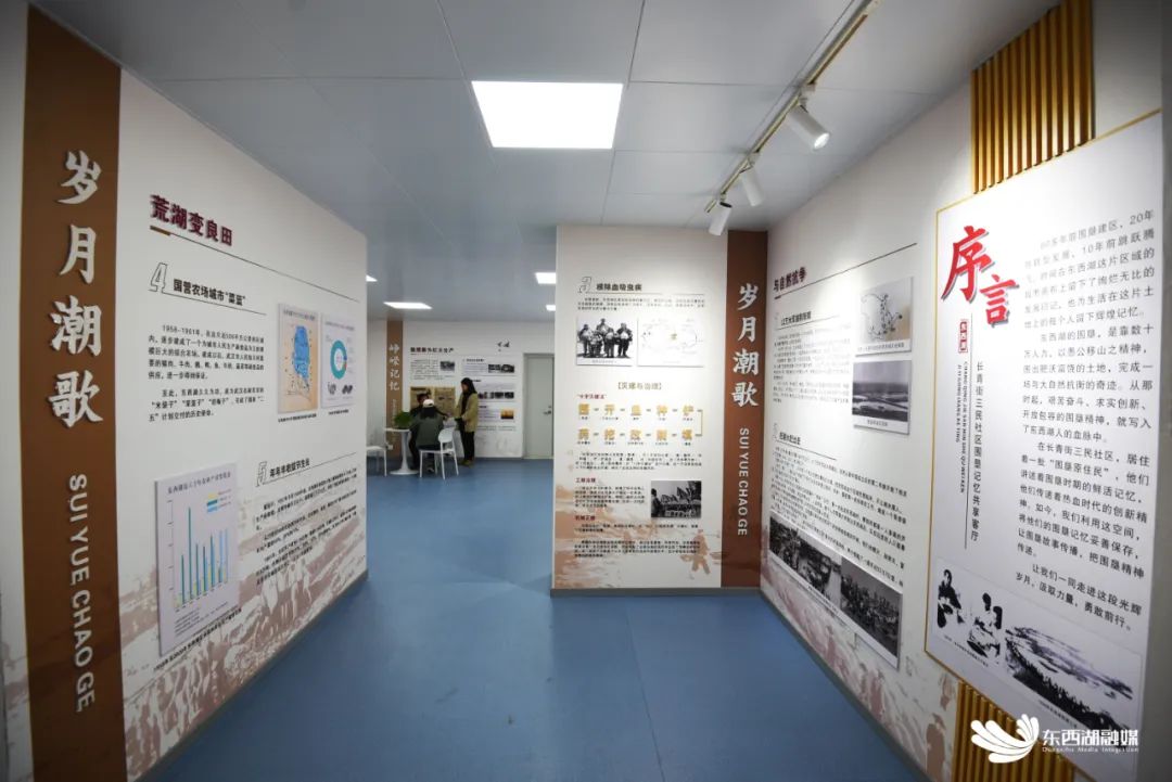 据介绍,围垦记忆共享客厅占地面积40平方米,用三个篇章回顾了东西湖人民如何让荒湖变良田,并在这片热血土地上大胆改革、火红建设美好家园的历程。
