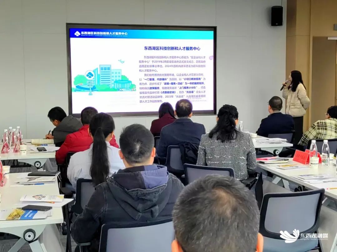 现场,区科技创新和人才服务中心相关负责人向与会企业代表详细介绍了非公有制企业职称申报、网谷驿站申请等聚人留才、乐业安居政策。