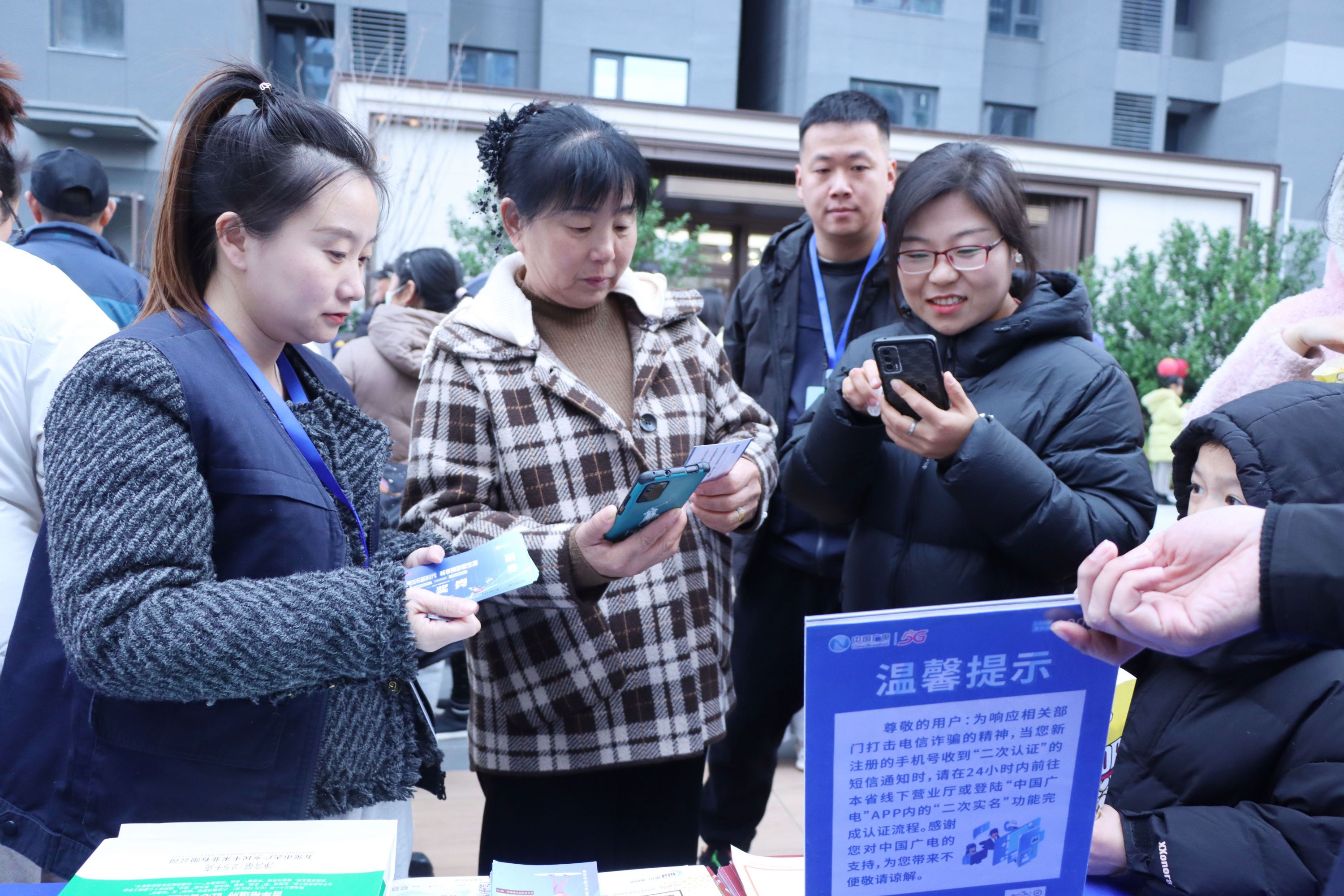 12月8日下午,在东西湖区径河街稻香社区武汉二十四城,湖北广电网络武汉公司来到社区居民身边,开展主题为“广电5G新时代 畅享精彩惠生活”电信及金融反诈宣传活动。