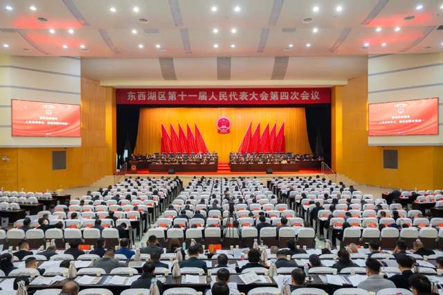 上午9时,徐贻功宣布东西湖区第十一届人民代表大会第四次会议开幕。全体起立,奏唱中华人民共和国国歌。