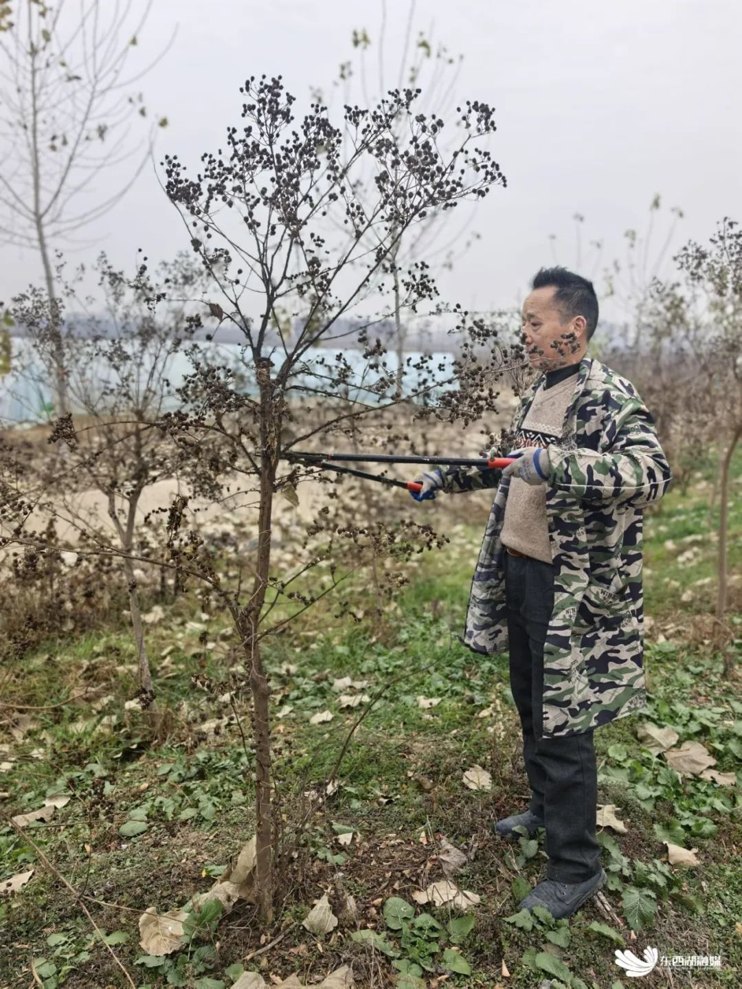师傅修剪枯树枝