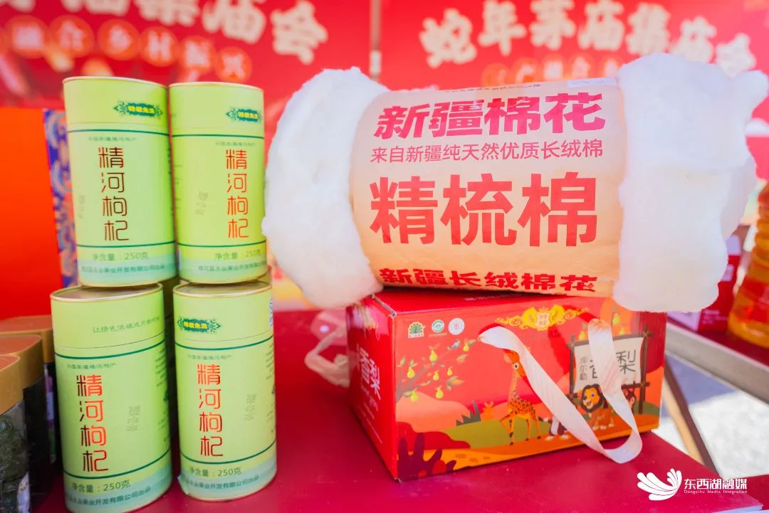 本届庙会100个摊位(企业)参与,柏泉年货、咸丰年货、新疆年货、阳雀湖年货四大特色年货摊位,飘香街头。北疆高山牌牛羊肉、夏黑葡萄乌龙茶、纸皮巴旦木、灵峪双河沙棘汁等59种新疆特色农产品,咸丰黑猪、腊味、茶叶等30种特色农产品及湖南樟树港辣椒产品,让人目不暇接,多样性年货让游客们享受大江南北吃、喝、娱、乐、购一站式体验。