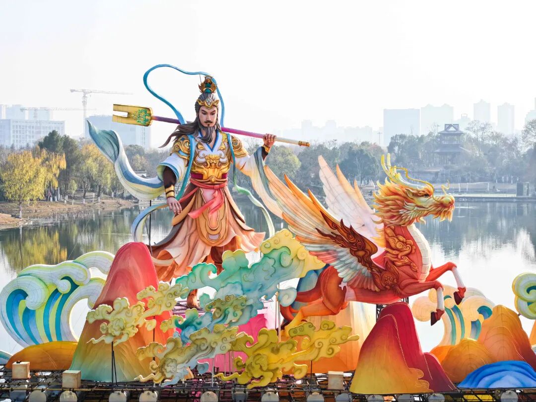值得一提的是,本届灯会还巧妙地将长江流域流传的民间传说如大禹治水、巫山神女、白蛇斗法海等融入花灯设计中,或与当下网络流行语相结合,以诙谐幽默的方式呈现;或被装扮成赛博机甲风格,展现出别样的科技美感。