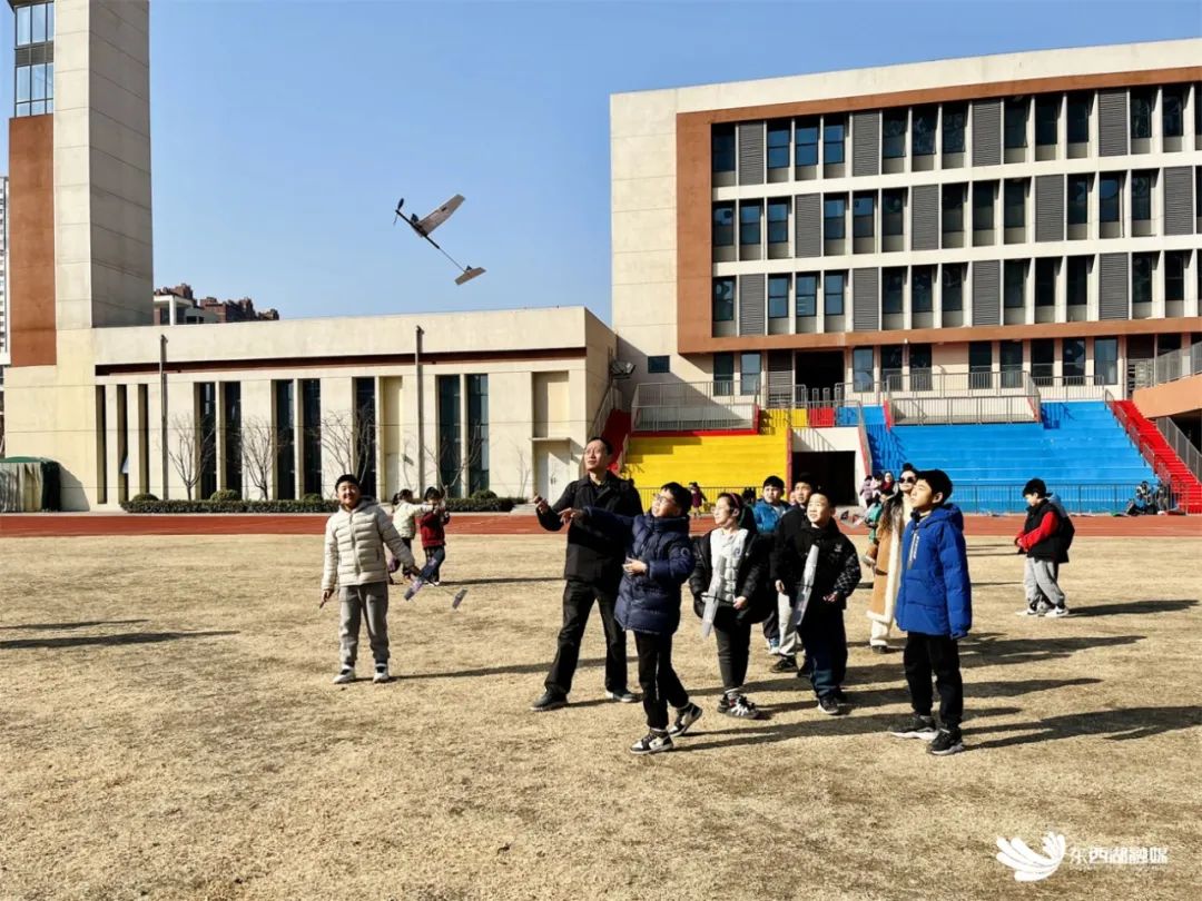 在长春街·七一学校东西湖分校操场上,另一场科技盛宴正在上演。学生们手持自己拼装的皮筋动力滑翔机,争先恐后地参与“试飞”活动。随着一阵阵欢呼声和加油声,滑翔机在空中划出一道道优美的弧线,飞行时长也不断被刷新。