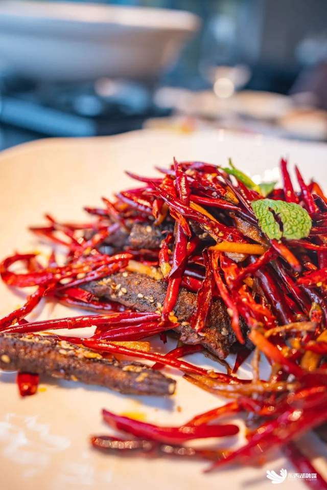 江湖脆口鳝则是餐厅的创新之作。在干煸菜的领域,牛肉较为常见,梧桐雅苑却另辟蹊径,将鳝鱼段先油炸至酥脆,再进行干煸。出锅后的鳝鱼香辣椒麻,鲜脆回甘,是餐桌上的绝佳下酒菜。
