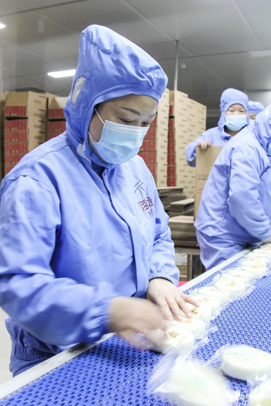 高效运转的芝士蛋糕生产线。