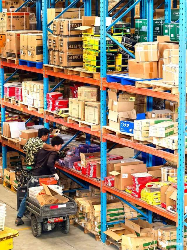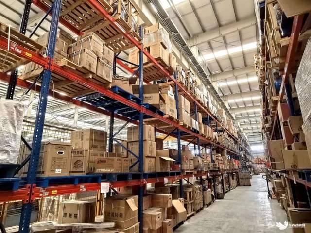 仓储区内部商品整齐摆放。