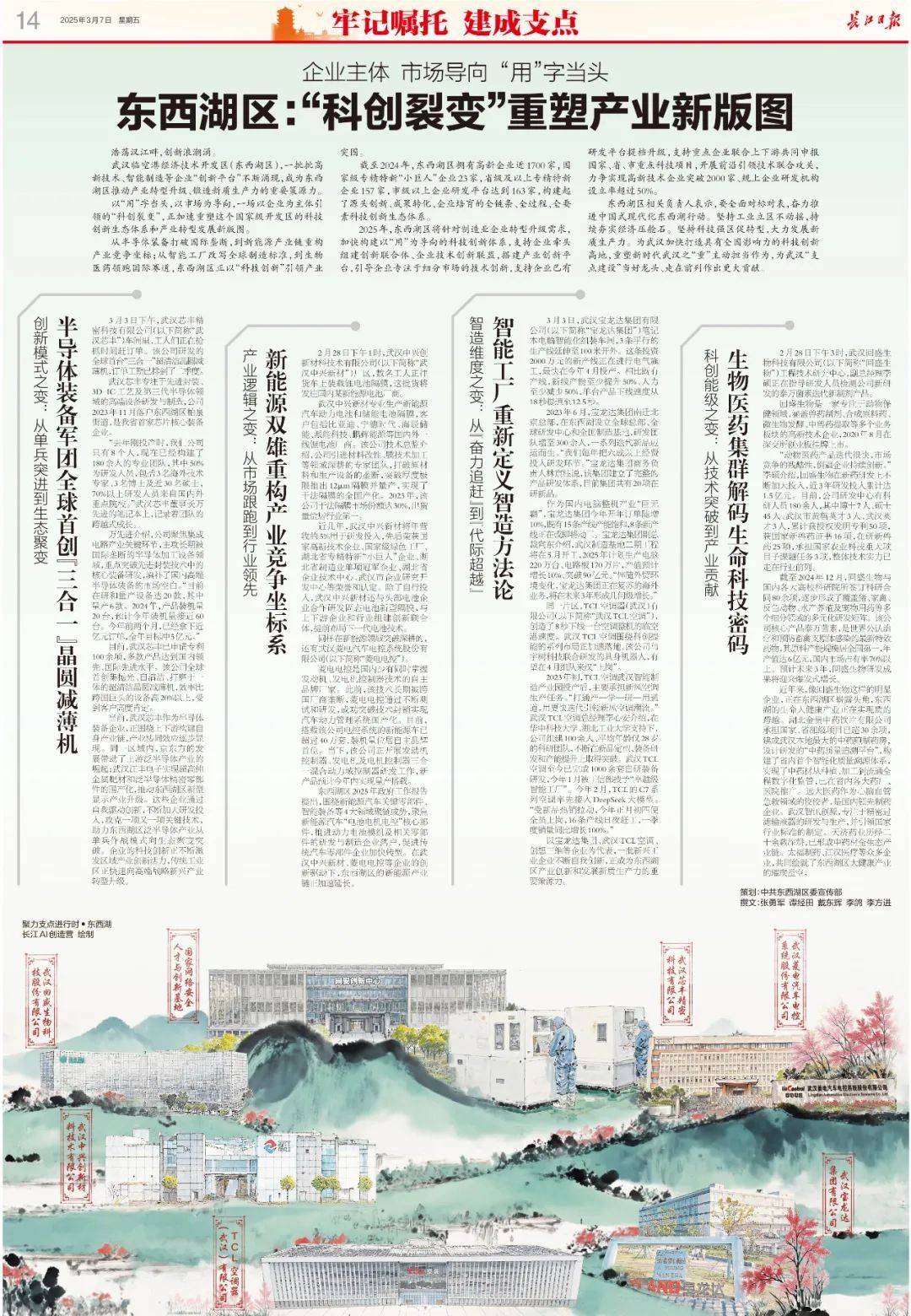 3月7日,长江日报专版报道:《东西湖区:“科创裂变”重塑产业新版图》