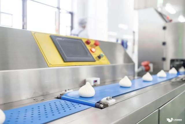 春风拂过生产线,设备的轰鸣与屋外的鸟雀啼鸣交织,一份份可口的面点热气腾腾地下线。