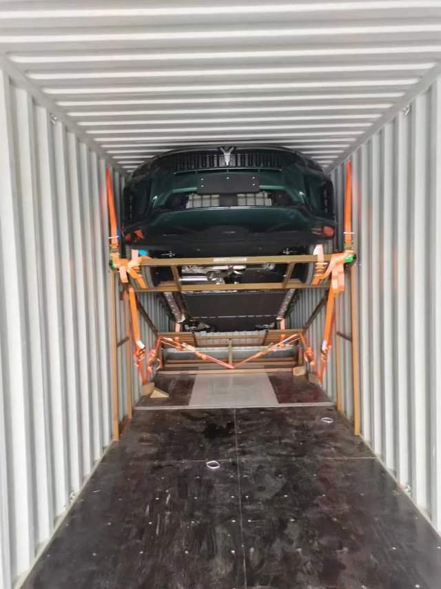 以2021年岚图FREE汽车的出口为例,这款大型SUV车长4.9米,重达2.3吨,按照传统装箱方式,一个集装箱只能装载2台车。
