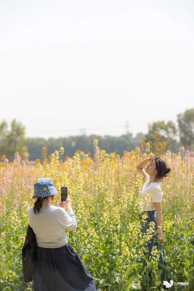 身着浅色、纯色衣物更能与油菜花田的背景相融合,拍出充满春日氛围感的照片。拍照时一定要爱护油菜花,切勿踩踏,让这片美丽的花海得以长久绽放。