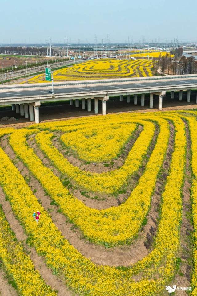 踏入新沟镇莲港苑以北、东吴大道以东的油菜花田,一瞬间,仿佛跌入了莫奈画中的花园,被无边无际的金色温柔包裹。